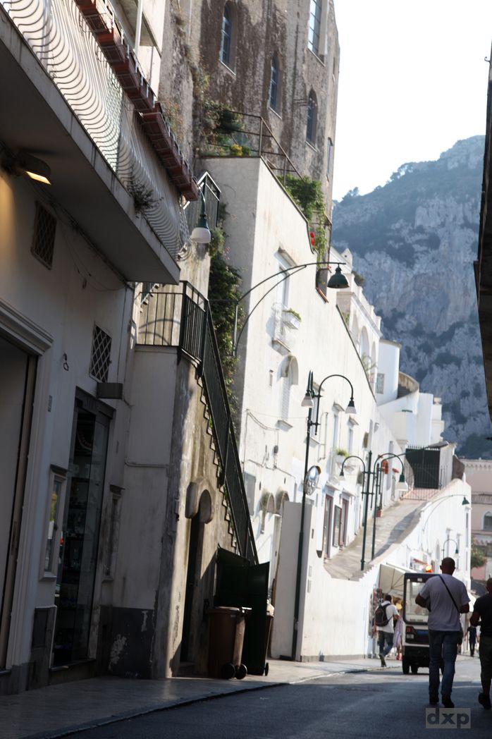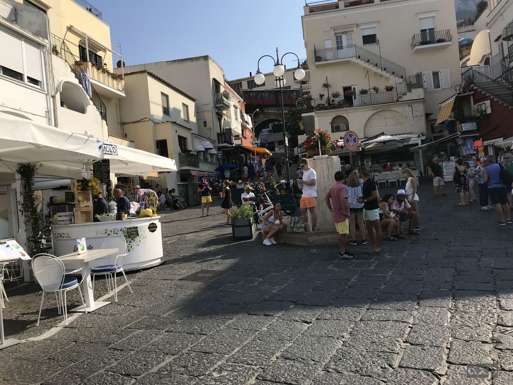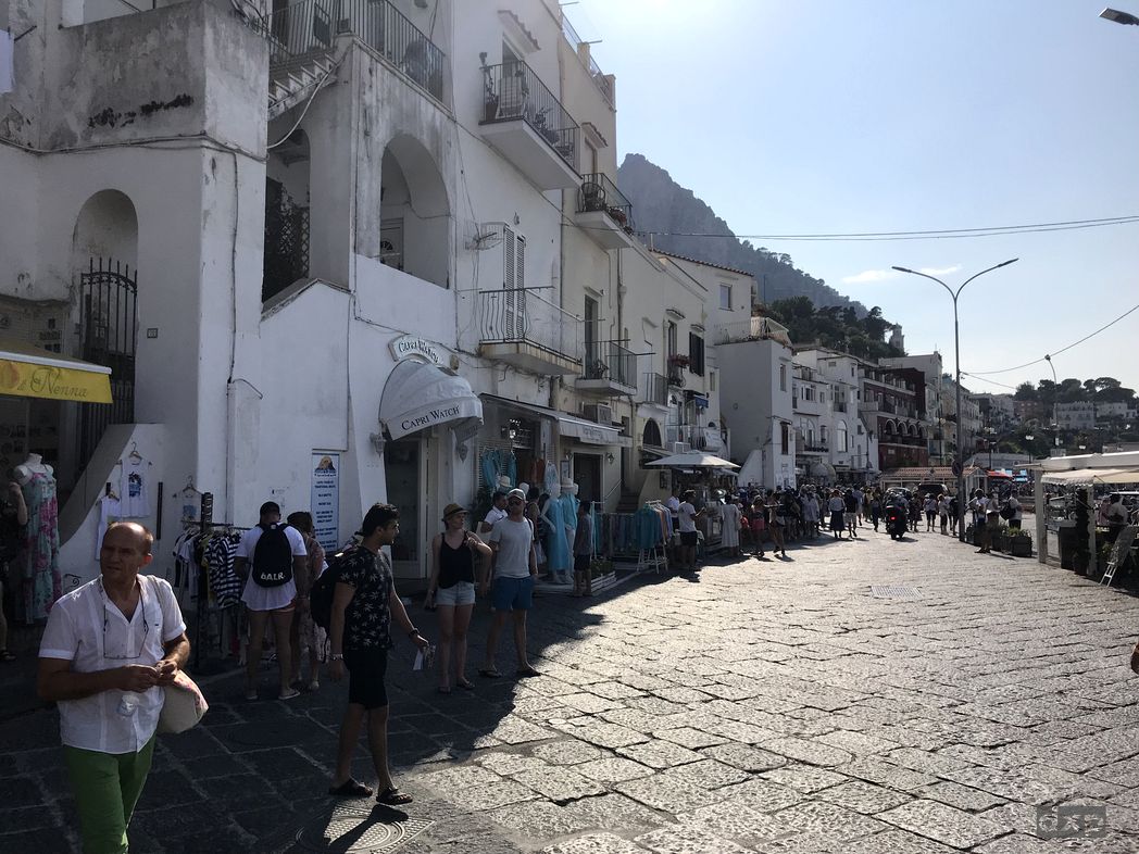 Auf geht’s in die City. Vom Hafen mit der Seilbahn nach Capri, das etwas höher am Berg liegt. Sehr schöne Gassem, kleine Lädchen. Toller Ausblick. Und irre viele Touristen. Quasi im Minuten-Takt legen Fährboote an und schütten hunderte Touristen auf die Insel. Die steigen um auf kleine Ausflugsboote oder erkunden die Insel. Abends alles wieder retour zum Festland.