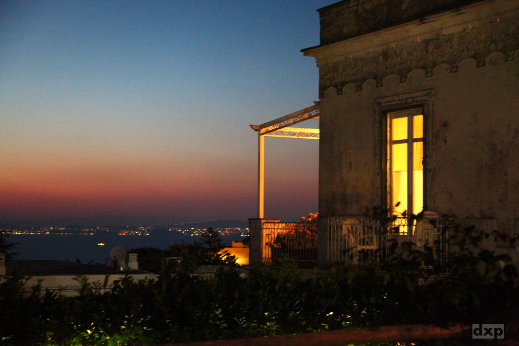 Mit der Dämmerung noch am Axel Munthe Haus, heute ein Museum, vorbei spaziert. Mt dem Bus zurück? Ich erinnere mich an von einem Wanderpfad gelesen zu haben, Den finde ich dann auch im Dunkel. Treppen die das Kliff nach Capri und den Hafen hinunter führen. Ich lass das mit dem Bus und mache mich im dunkeln die Treppen runter.