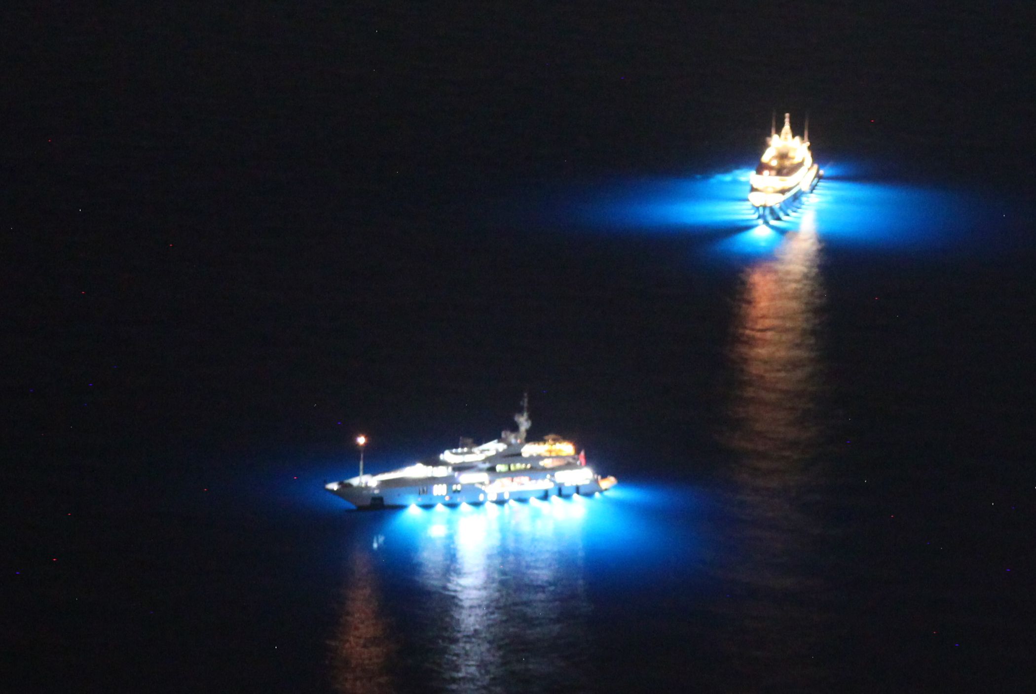 Wahnsinns Bilder. Capri beleuchtet. Vor dem Hafen einige Superyachten die das Meer mit Licht durchfluten. In der Ferne Neapel und die Lichter der Küstendörfer. Weiter links Ischia. Ein tolles Erlebnis!
