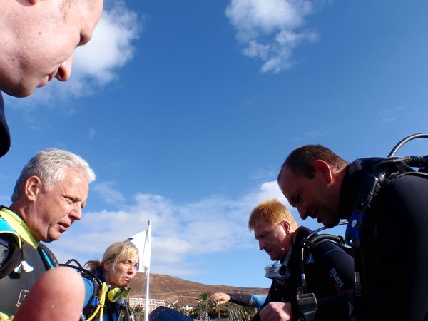 | 4,5 Stunden Flug und wir landen bei 27°C auf Fuerte. Auf den ersten Blick ein öder Steinhaufen ohne jegliches Grün. Auf den zweiten Blick auch nicht anders. Der Club ist 90 km vom Flughafen entfernt. Noch mal 1,5 Stunden fahrt mit dem Shuttle Bus. Der Empfang war kurz und wenig informativ. Hier der Zimmerschlüssel, da geht’s lang (mit dem Finger richtung Horizont zeigend) und dort gibt’s gleich Essen. Tschüss. So weit erst mal ein Entäuschung. Zu mindest ein paar Infos über den Club, die Aktionen, etc. hätte ich mir erwartet. Meine Erwartungen waren wohl zu hoch angesetzt. Ein paar hundert Gäste an runden Tischen verteilt. Ein wirklich vielfältiges Menü. Aber merkwürdige und vor allem viele ältere Leute (nichts gegen die alten und weisen, aber nach großer Party und tanzen zu später Stunde sieht das nicht aus). Sonnengegerbte, schwarzbraun gebrannte Seniorinnen schleichen um die Buffets. Ich reihe mich in den Strom ein. Asiatisch gibt’s heute. Sushi, Frühlingsrollen, Ente, etc. Lecker sachen. Der Tag war lang und ich gebe auf für heute. Die Party muß dann wohl an einem anderen Tag stattfinden. Gut geschlafen und gemütlich aufgewacht. Um neun zum Frühstücken. Klasse Buffet und ich kann mich mal wieder nicht zurrück halten und probiere von allem was. Das Tagesprogram liegt auch aus. Um 10:00 gibt’s fuer Neuankömmlinge einen Welcome Drink und eine Clubführung. Super. Werde ich mit machen. Dann Cross-Golf, Tauchen oder Segeln. 16:00 Uhr Kaffee und um 18:45 GalaDinner (habe natürlich keine Schicken Klamotten dabei). Entscheidungsstress. Nach dem Clubrundgang gibt’s um 12 eine Reviereinweisung für segeln und surfen. Dann vorsprechen bei der Tauchabteilung. Brauche eine Versicherung und einen Tauch-Gesundheitsbescheinigung. Also um 17:00 Arzttermin gemacht. Dann für eine Enduro-Tour angemeldt. 10 km am Stand gejoggt. Der erste Tag ging quasi wie im Flug rum. Heute dann tauchen. Seit mehr als 10 Jahren war ich nicht mehr unter Wasser. Ein bisschen aufgeregt bin ich schon. Hektisch geht’s los – was mir schon mal gar nicht gefällt. Ein andere Gruppe ist noch mit dabei. Alle vollkommen überdreht, dumme Witzchen reisend. Nervig. Aber bald geht’s unter Wasser, dann ist Ruhe. Equipment zusammen bauen. Da muß ich schon mal überlegen was alles wo hin gehört. Geschafft. Auf in’s Boot und in fünf Minuten zum Riff raus, eine steile Felskante kurz vor der Küste. Korallen wachsen auf dem Vulkanboden keine, aber viele Fische gibt es. Klein Stachelrochen die sich im Sand verstecken, Baracudas und Muränen. Spannende 50 Minuten, in denen ich noch viel Luft für das tarieren verbraucht habe. Wie ein Anfänger halt. Auf und ab wie eine Boje. Kaum zurück auf dem Boot, wieder dieses überdrehte Gehabe. Mit der Tauchschule werde ich nicht mehr tauchen gehen. Besser wieder auf den Kat. Unförmige, meist älter Menschen beim Kumpf ums Mittagsbuffet. Dazwischen ein paar aufgedonnerte Richies. Badelatschen und Gucci geben sich die Hand. Dazwischen mischt sich das Personal und sitzt mit an den Tischen. Finde ich nicht so gut, stört aber auch nicht wirklich. Eine schlechte Nacht. Der Nachbar hat schier unglaublich laut geschnarcht. Selbst mir Kissen um die Ohren war das sägen noch gut zu vernehmen. Als ob der Kerl bei mir im Zimmer liegt. In der Früh ging dann noch irgendwo ein Wecker an. Wer nimmt schon einen Wecker mit in der Urlaub? Egal. Lege mich nachher einfach noch mal hin. Der Tag klingt dann mit einem Alpenbuffet aus – oder was halt der Fuerterikaner dafür hält. Aber wir wollen’s ja nicht schlechter machen als es war. Lecker und viel wie immer. Nur halt, alles ist esh schon so deutsch auf der Insel und speziell in diesem Club, daß es eigentlich kein Alpenbuffet braucht. Die Nachfrage entscheidet ja bekanntlich über das Angebot, als bin ich mit meiner Meinung wohl eher in der Minderzahl. Den Langzeiturlaubern ist so ein Heimatabend vielleicht wirklich recht. Als Wochentourist will ich aber lieber was „femdes“ entdecken. |