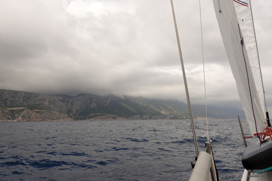Der Sturm hat sich gelegt. Von Brac flitzen wir, mit dem ersten Reff, rüber zur Insel Hvar. Hart am Wind. Hohe Wellen. An einem Katamaran ziehen wir in Luv vorbei und lassen den hinter uns. Ein ambitionierter 50 Fusser hängt sich in unser Kielwasser, will uns wohl mal was zeigen. Etwas den Trim optimieren, etwas mehr Höhe. Nach einer halben Stunde ist auch der Verfolger in Lee weg.