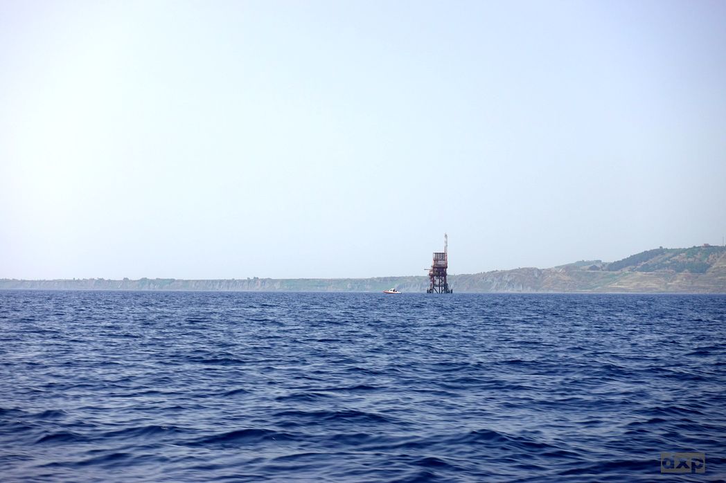 Nach einer Meile vom Hafen kommt die Coast Guard mit Ihrem Schnellboot auf mich zu geschossen. Winkt und gestikuliert, dass ich in die Richtung nicht weiter darf. Ich bin wohl den Bohrinsel zu nahe gekommen. Wende. Eine Meile in die andere Richtung,. Wende. Und ich kann mit genügend Luft dan der Bohrinsel vorbei. Vor der wartet die Coast Guard und beobachtet kritisch was ich da mache. Erst als ich rum bin zieht die weiter.