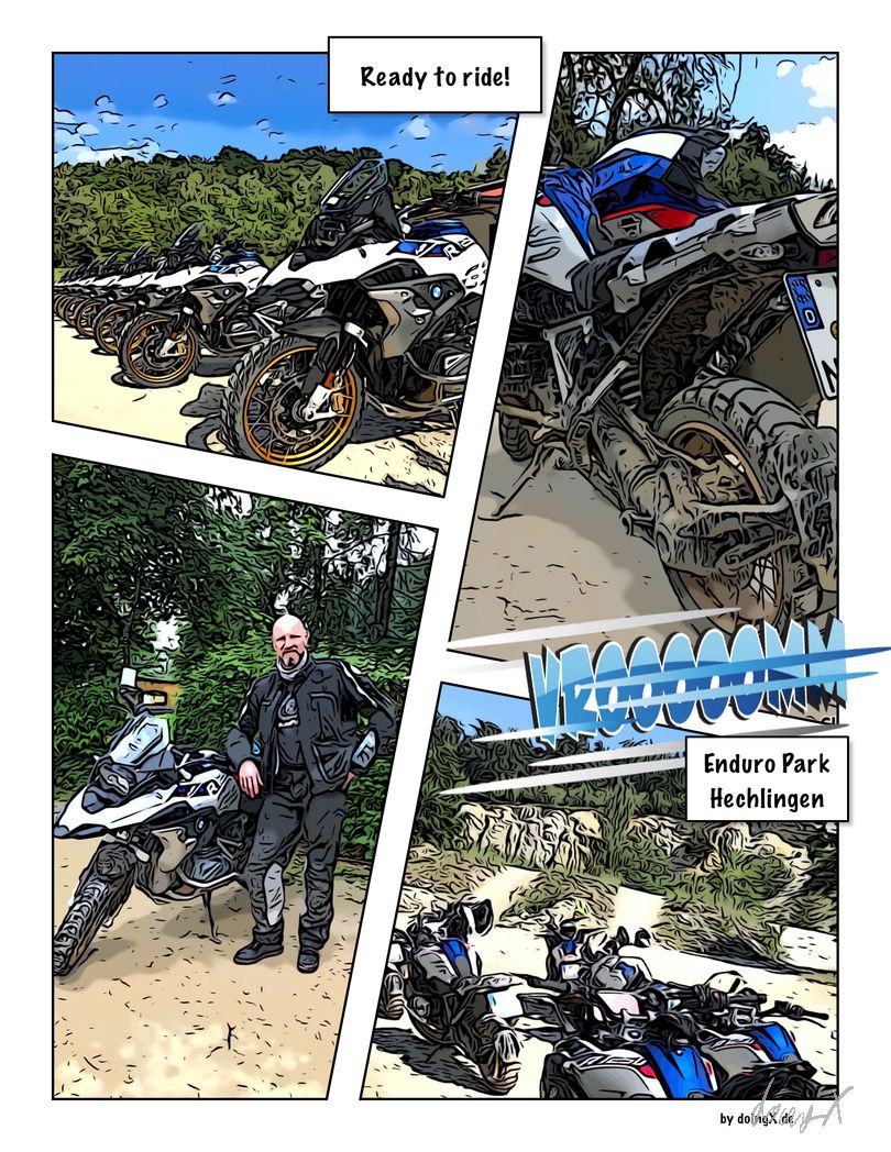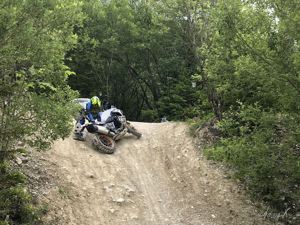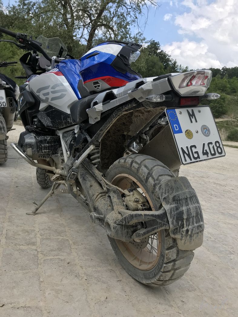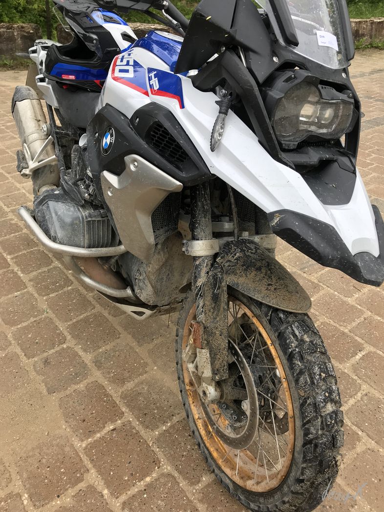 Anstrengende zwei Tage waren das. Samstag in der Expertengruppe. Steile Auffahrten, Schotter, Single-Trails, Rampen, Wasserdurchfahrten, … Was ein Spaß, aber Mann, hat mich das fertig gemacht. Die Jungs mit dem Guide Manuel waren echt zackig drauf. Einige male habe ich die GS weg geschmissen, einen Baum getroffen und bin hinter einem Erdhügel im Gestrüpp verschwunden. Zu viel für mich. Am zweiten Tag habe ich mich einer anderen Gruppe angeschlossen. Der Schweizer Guide Tibor hat die Sache entspannt angegangen. Gute Erklärungen, Tipps, … und gefahren sind wir Sachen, da hätte ich durchaus auch zu Fuß Respekt vor dem Gelände gehabt. Wie war das … enjoy the Scenary, but try not to get part of it. Endurooo!