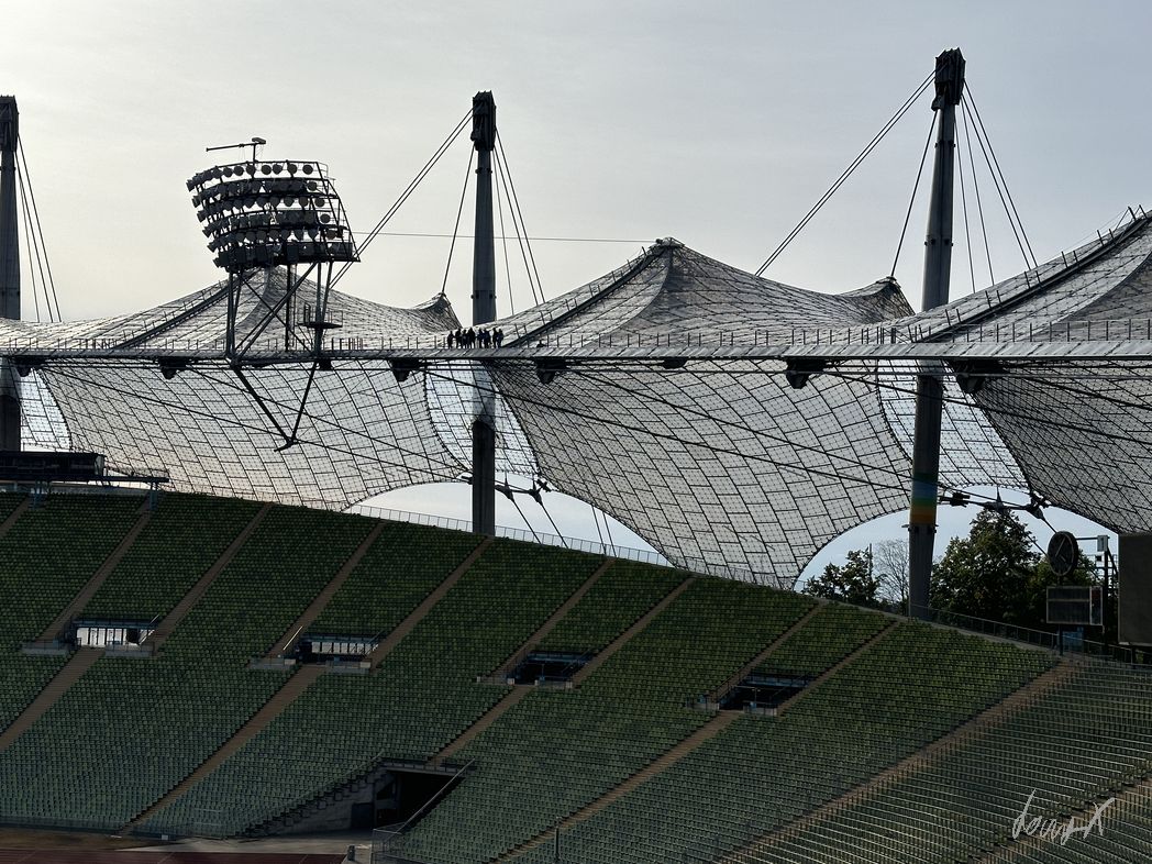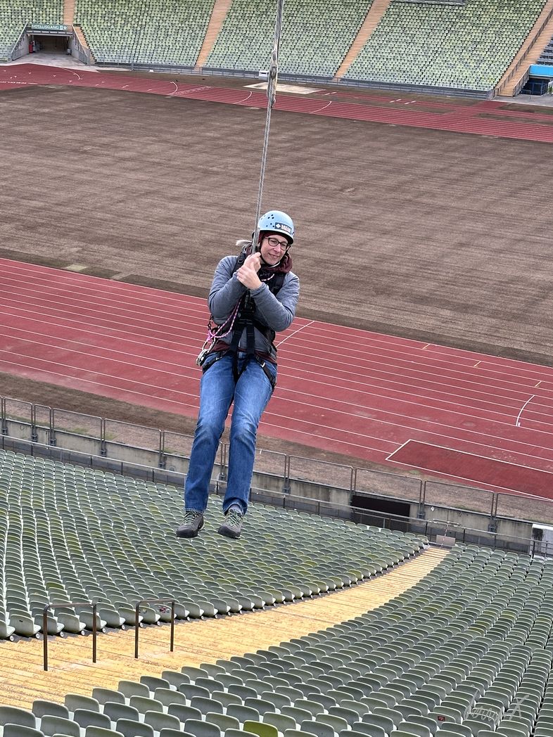 Zssssss geht es an dem Stahlseil quer über das Olympia Stadion. Ein kleines Abenteuer ist das schon!