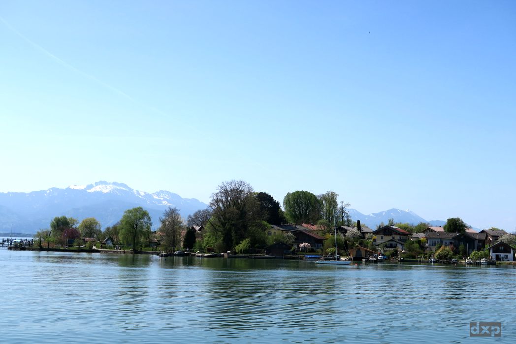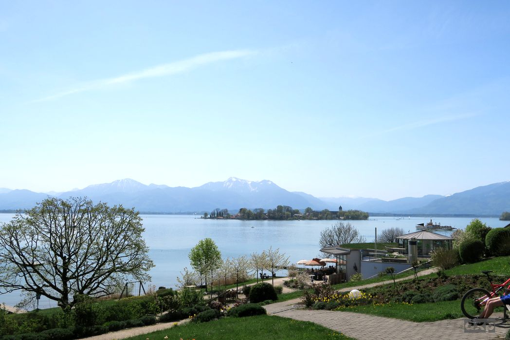 Am Samstag ein gemeinsamer Ausflug auf die Fraueninsel der Chiemsee, mit den verschneiten Bergen im Hintergrund ein Postkarten Idyll.
