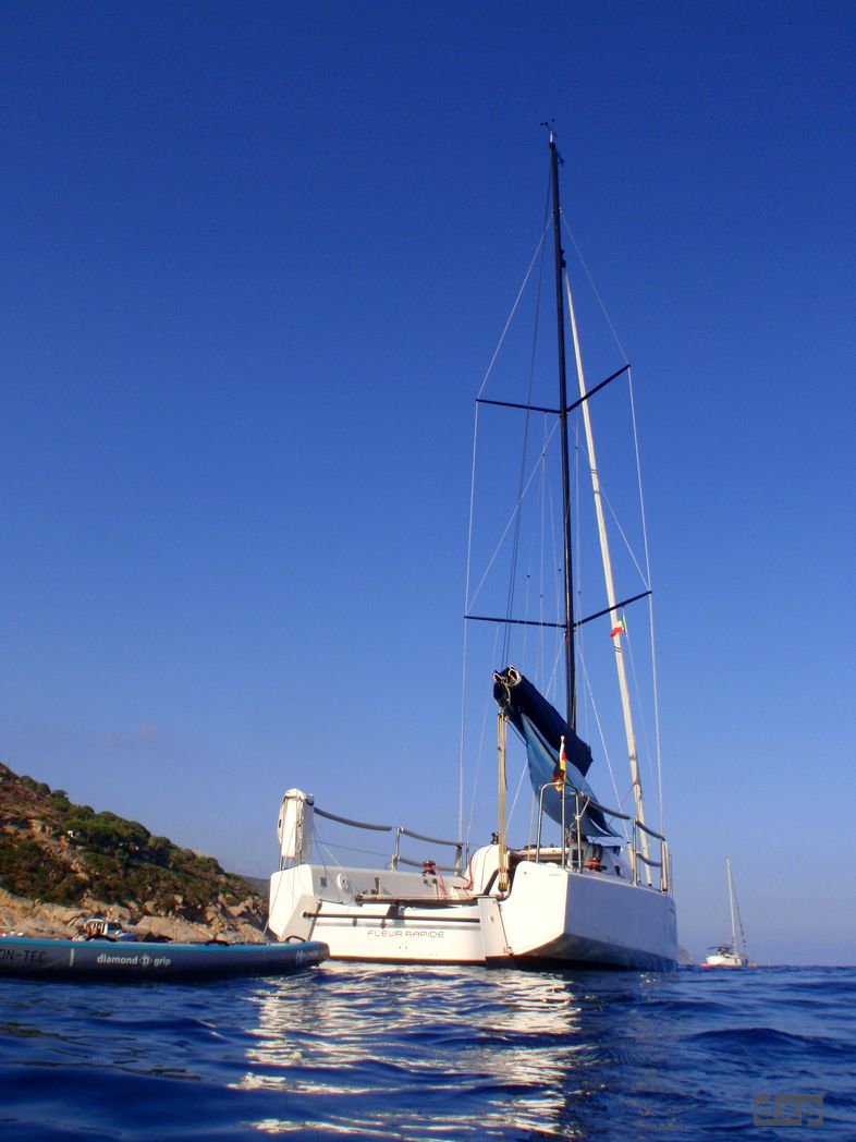 Heute ist Samstag. Die Bucht recht gut besucht. Gar nicht so leicht einen geeigneten Ankerplatz zu finden. Erst mal ankommen. Gegen Abend werden wohl die ein oder andere Tages-Bade-Gäste wieder abfahren. Dann parke ich noch mal um.