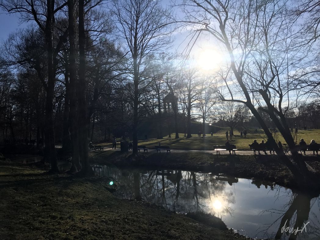Am nächsten Tag machen wir bei sommerlichem Wetter einen Spaziergung durch Schwabing und den Englischen Garten.