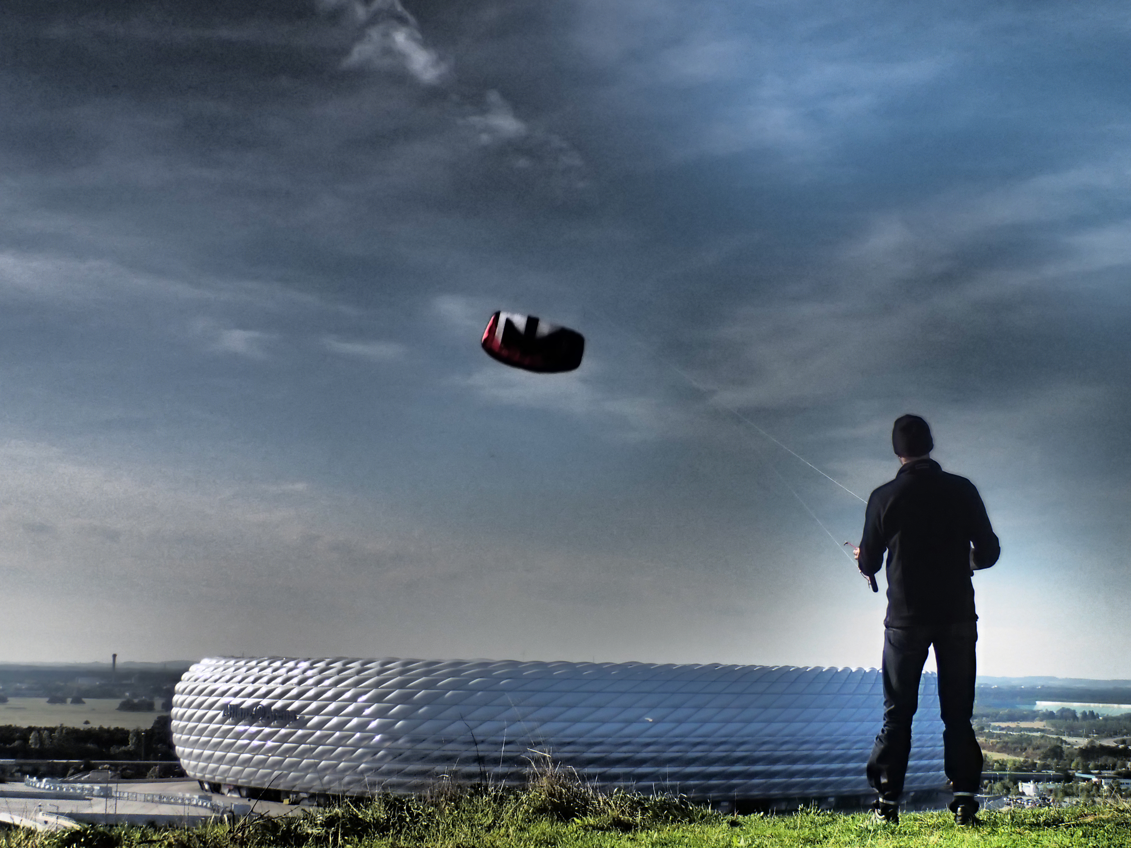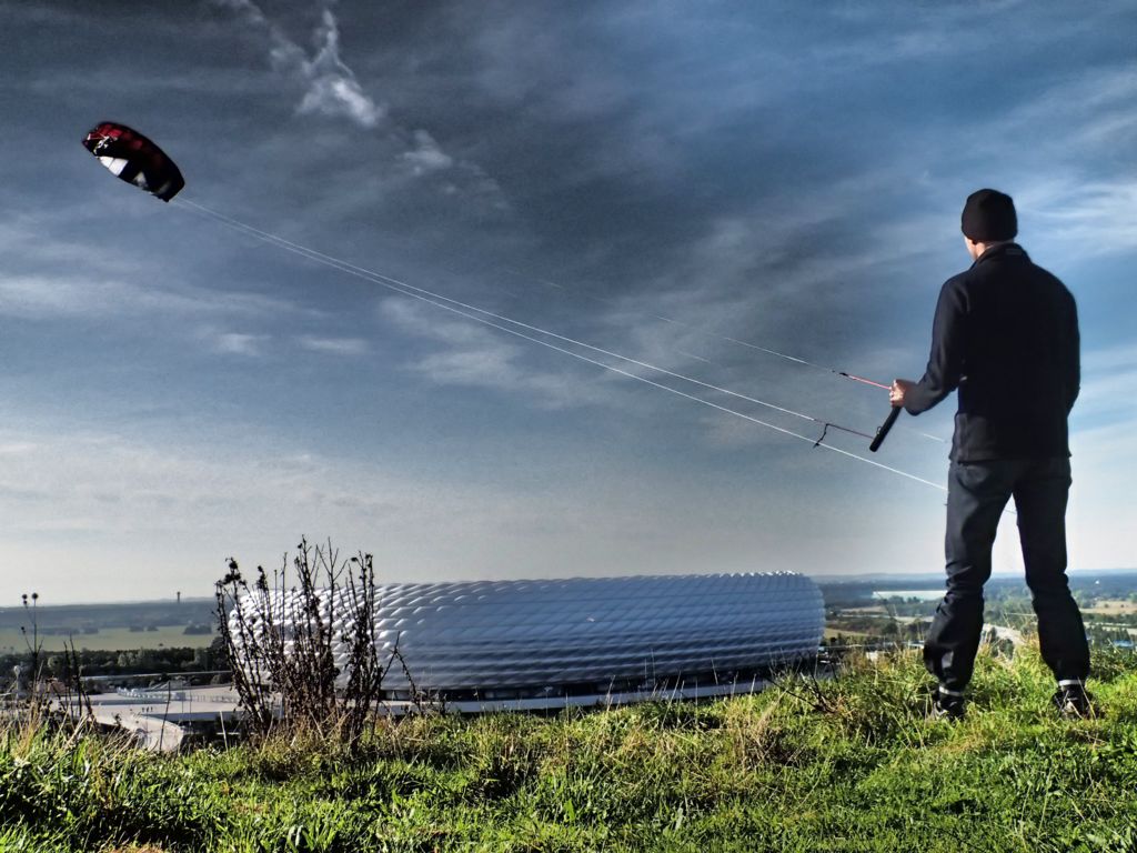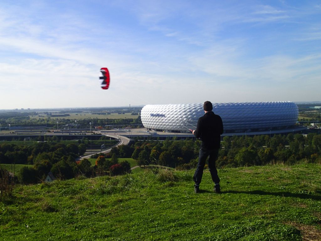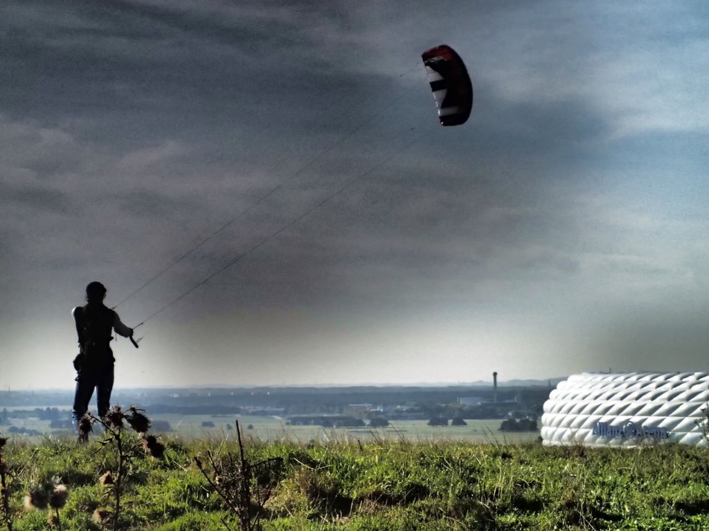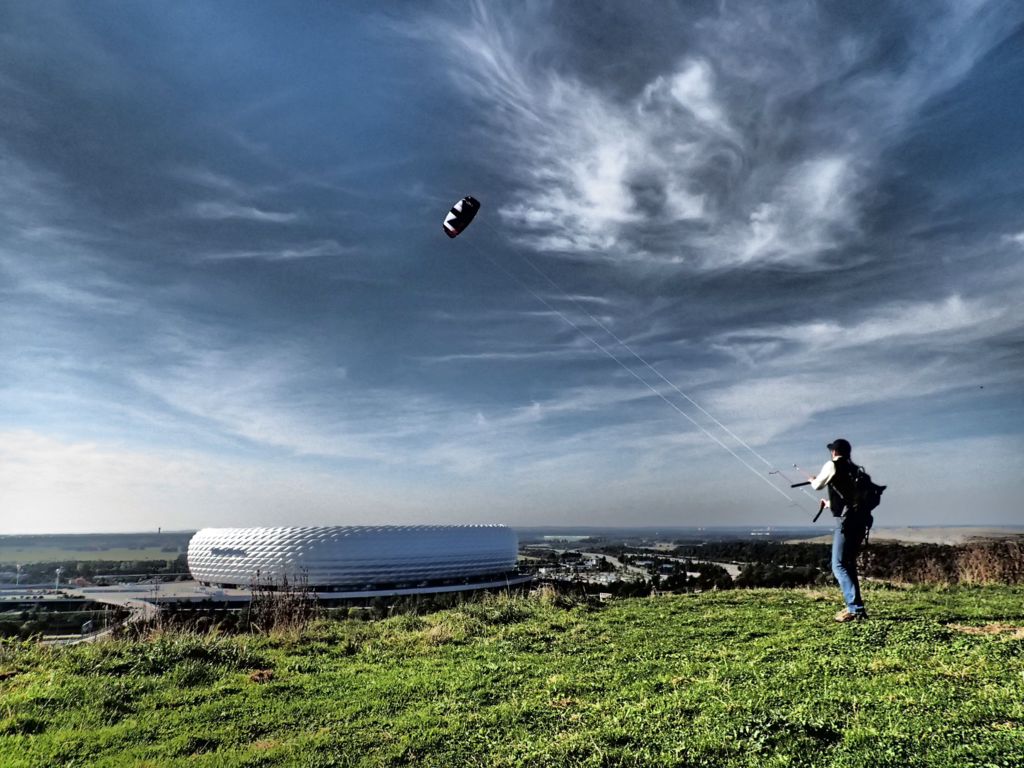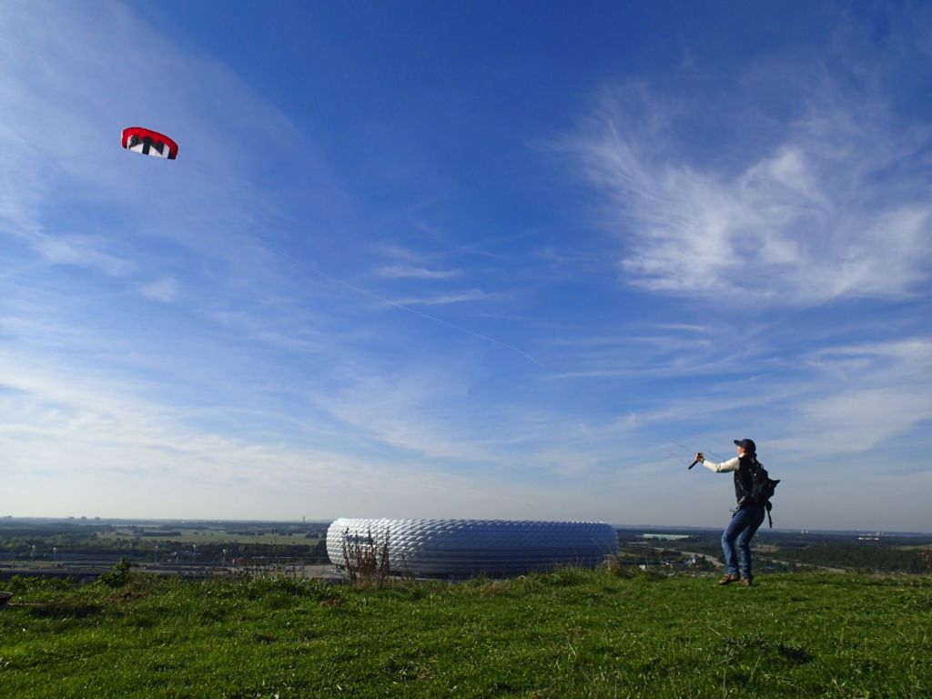 Auf der Suche nach Wind sind wir im Norden Münchens am Müllberg gelandet. Ein super Blick über die Stadt und auf die Allianz Arena.