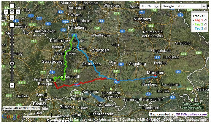 Die Anreise durch den Schwarzwald mit knapp 1000 km auf dem Moped war toll, aber auch anstrengend. Auf dem Rückweg dann noch die letzten 100km Regen, die Temperatur ist auf 12°C gefallen. Brrrrr. Daheim erst mal eine heiße Dusche und auftauen.