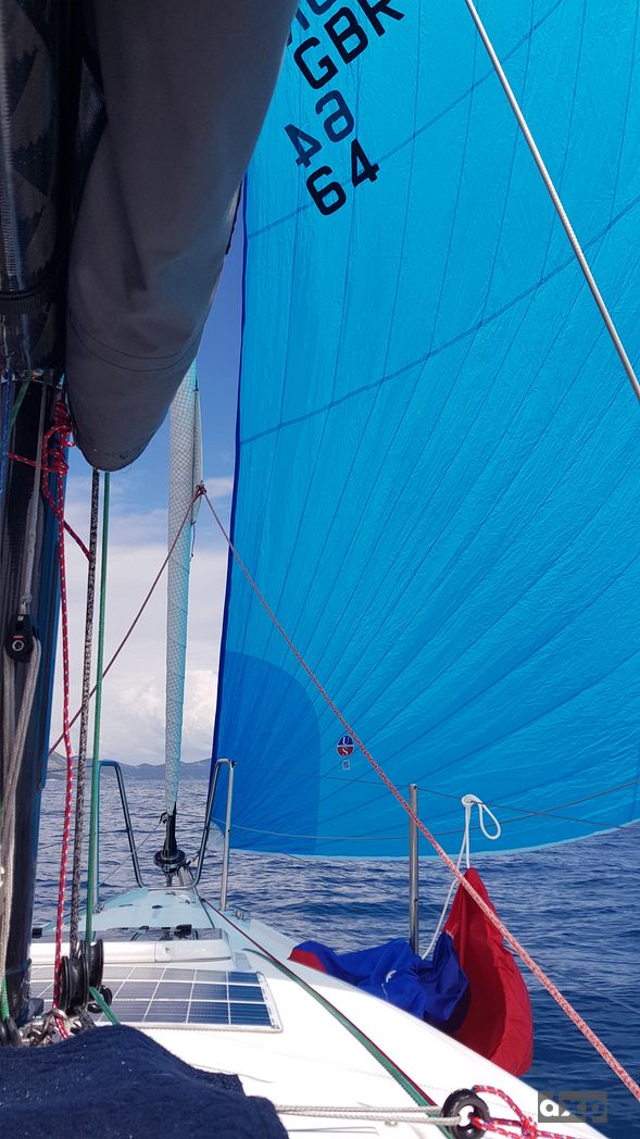 Erst mal gemütlich mit Motor aus Korcula und durch die vorgelagerten Inselchen. Genau in Richtung Regen. Erst ein paar tropfen, dann Schüttregen. Kontinuierlich wechselnder Wind in Stärke und Richtung. Nicht wirklich Spass.