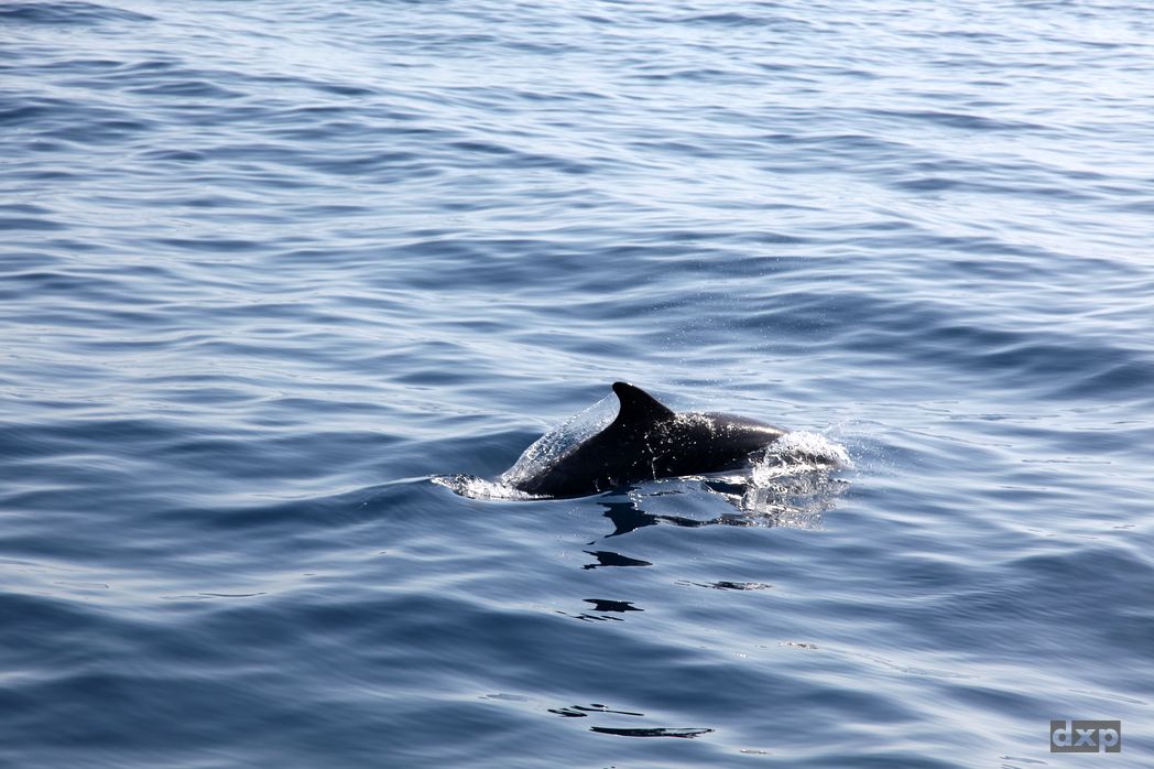 3 Meilen vor dem Porto begleiten mich noch für ein paar Minuten zwei Delphine. Sehr cool. Bei dem klaren Wasser sind die toll zu sehen.