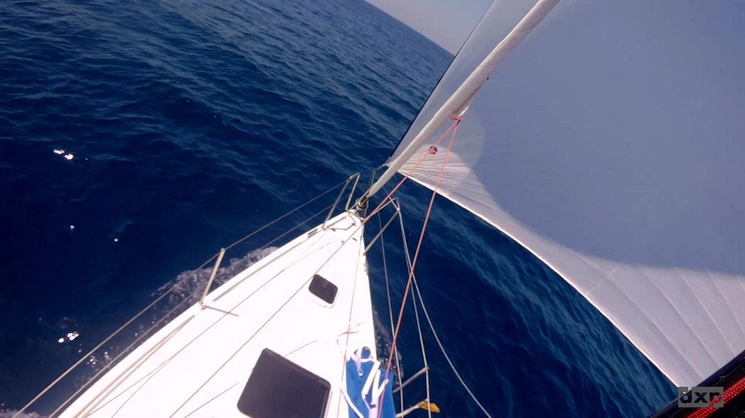 Die Anker rauf, gemütlich mit Motor ein Stück. Wind? Wo ist der Wind. 2 Stunden Motor fahren, bis zum ersten Windhauch. Der kommt aber genau von vorne. Ich ändere den Kurs. Der Wind soll ja angeblich drehen. Setze den großen Gennaker. Nix ist. Der Wind von vorne. Gennaker wieder runter. Fock raus. Das geht ein paar Minute. Wind dreht, weht aber nur ein bisschen. Fock einrollen. Code Zero setzen. Nach 30 Minuten dreh der Wind wieder. Code Zero runter, großes Gennaker wieder hoch. Jetzt geht das. Hoffentlich hält es eine Weile an. Dieses Segel setzen ist doch recht anstrengend. Und das rumturnen auf dem Boot auch nicht unbedingt ein Spass bei den Wellen.