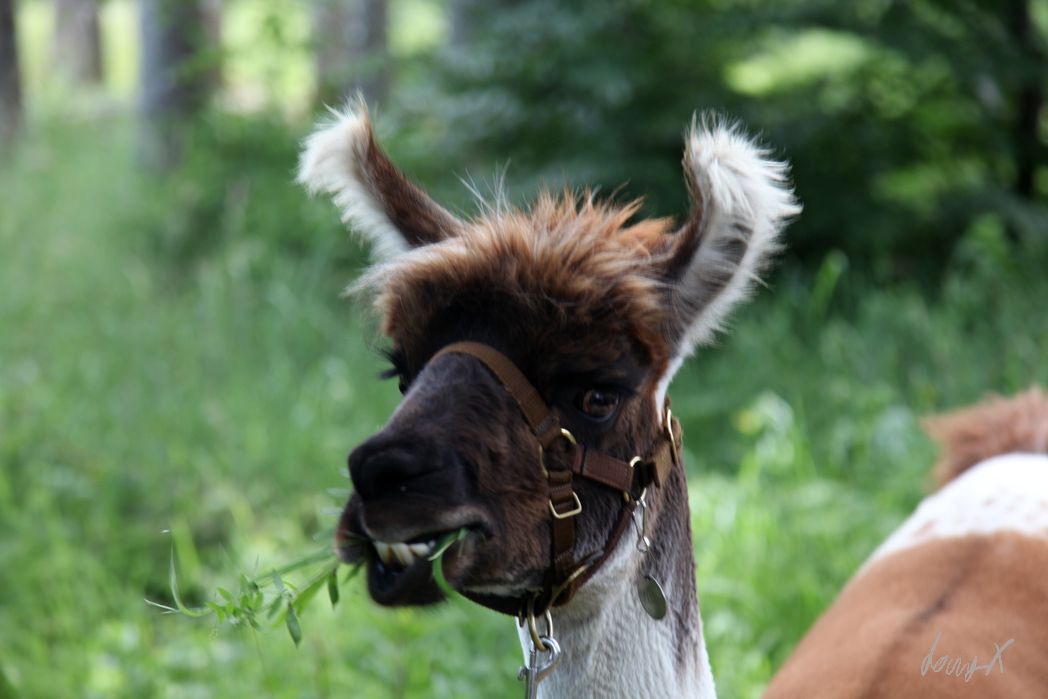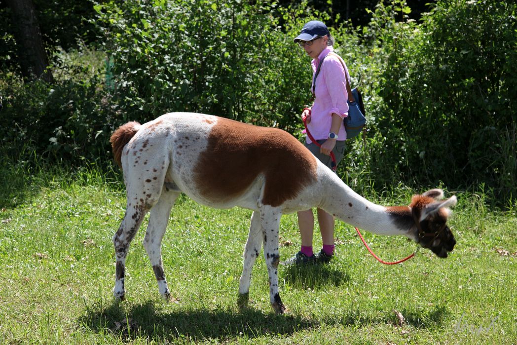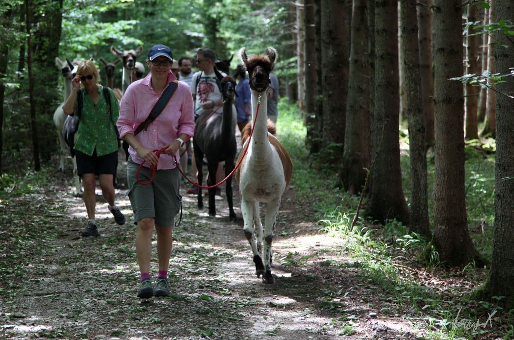 Juan“ wird uns zugeteilt. Fünf Jahre alt. Wir übernehmen gleich mal die Führung des Lama Ausflugs. Sieben Lamas werden von „mutigen“ Wanderern geführt, erst über ein weites Feld, dann durch den Wald. Abwechslungsreich. Die Lamas sind zahm, zicken nicht. Eher ängstlich. Die Ohren sind wie Radargeräte. Ein huschen im Wald, ein unbekannter Ton voraus. Besser erst mal stehen bleiben.