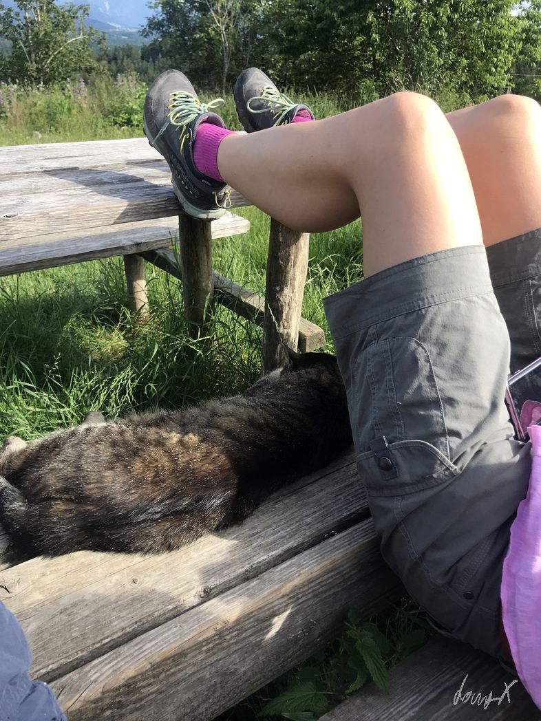 Die Tiere ziehen auch Bremsen an, wie Magnete. Das juckt natürlich. Immer mal wieder anhalten und die Biester verjagen. Oder mal durch eine Busch, der quasi eine Lama-Wasch-Anlage ist. Herrlich, wenn sich Lama da kratzen kann. Und wenn schon mal im Gebüsch, dann auch gleich noch einen Happen von dem lecker, saftigem Grünzeug schnappen.