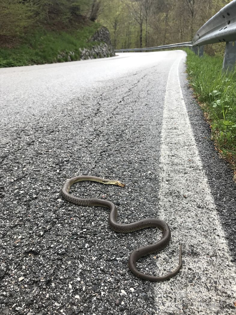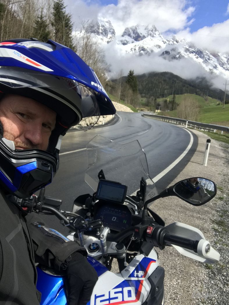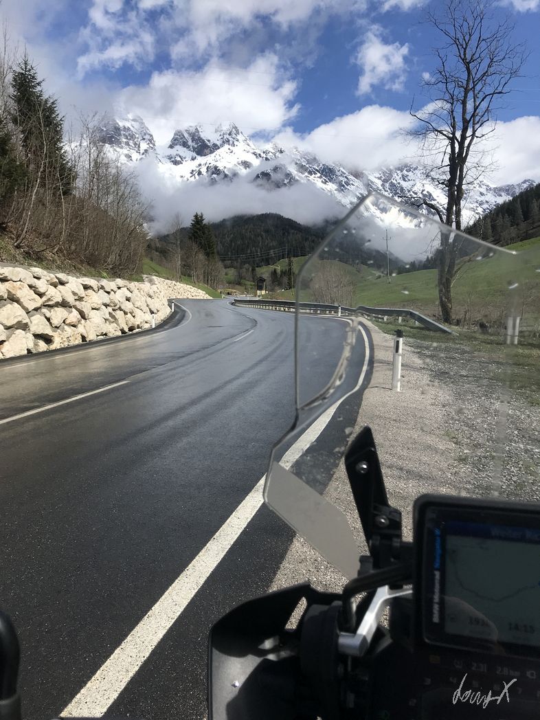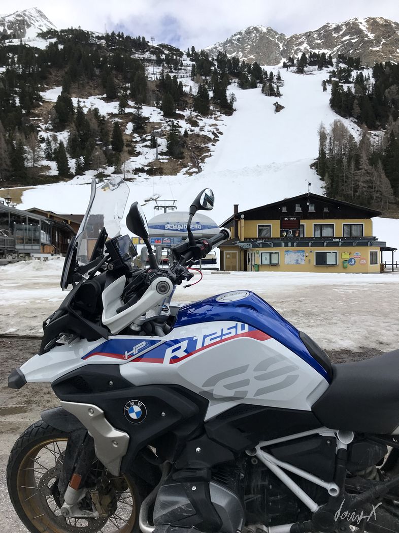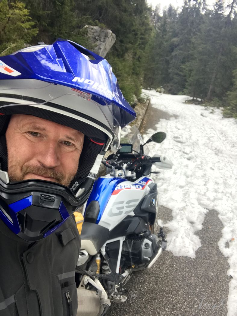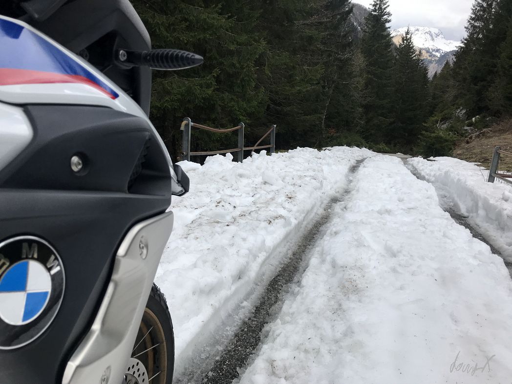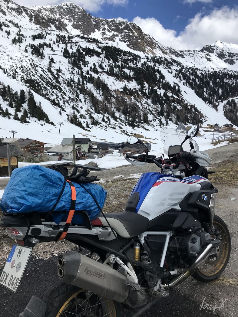 Am nächsten Tag zurück. Etwas Schotterweg wollte ich noch fahren, über die Straniger Alm von Italien nach Österreich. Ein wintzige, nur in wenigen Karten verzeichnete Straße die über den Bergkamm dann zum Schotterweg wird. So sollte es sein. Fast oben, vielleicht noch 100 oder 200 Höhenmerter, gab es kein Weiterkommen. Tiefer Schnee auf dem Waldweg. Und das auf der Südseite. Das wird nicht besser auf der anderen Seite. Also alles zurück. Puh. Das kostet Kraft und Zeit. Im Tal dann gen Norden über den Passo di Monte Croce Carnico, bei dem mich dann auch schon ein Regenschauer erwischt. Brrrr. Felbertauern habe ich keine Lust und die Salzburger route kenne ich schon. Also nach links über Innichen, Bruneck, Brixen Sterzing und zum Brenner. 2 Stunden später dann endlich warm geduscht und eine Portion Spaghetti. Gut ist es! 574 km in 10.5 Stunden und 8 Pässe.