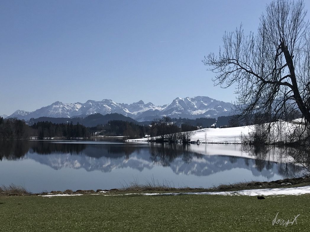 Sonnenschein, 18°C. Ein Tag für ein Mopedausflug. Am Alpenrand entlang, an vielen Seen vorbei bis nach Sonthofen. Strahlend blauer Himmel, verschneite Berge die sich in den Bergseen spiegeln. Das war mal was für’s Auge.