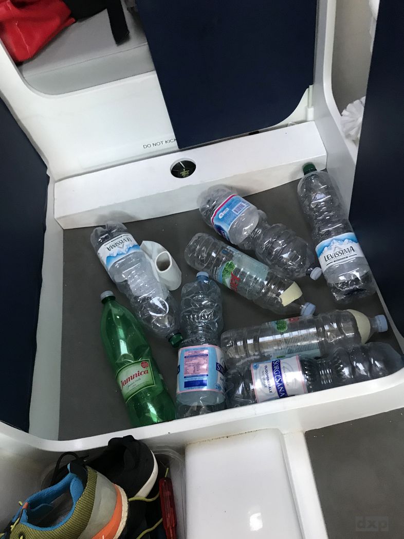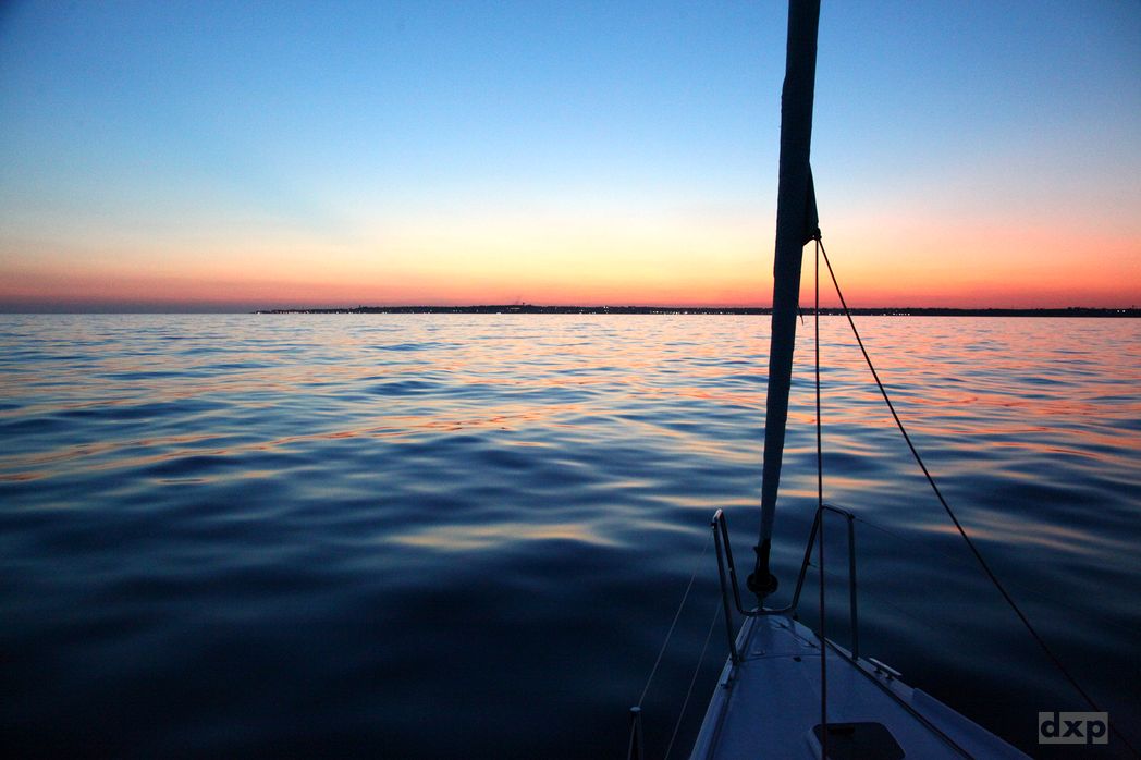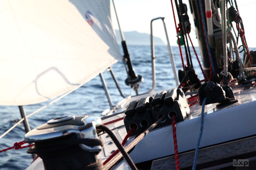Immerhin geht ein Hauch Wind. Zwar entgegen, aber immerhin Wind. Segel hoch, Motor hilft noch mit. 4 Knoten schaffen wir so. nach 3 Stunden ist auch dieser Windhauch weg. Glatte See bis zum Horizont. Motor noch ein paar Umdrehungen hoch, damit wir zumindest 4 Knoten haben. Leider steht eine Strömung entgegen, die 0.5 Knoten kostet. Das ganze zieht sich.