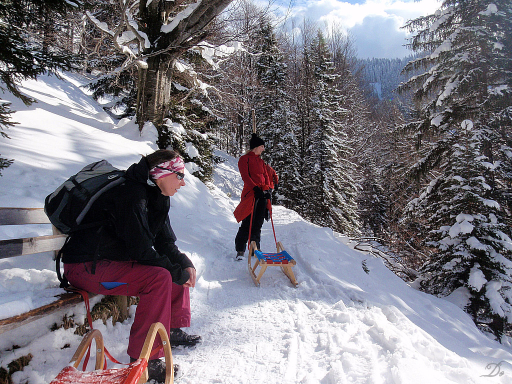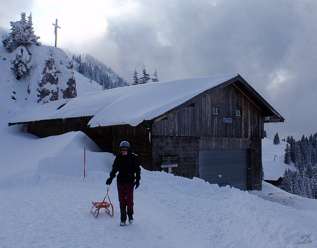 Spontan sind wir am Samstag zum Rodeln am Wallberg (Tegernsee) gefahren. Obwohl das Wetter nicht ganz so gut vorhergesagt war, standen wir fast eine Stunde für unsere Leihrodel an (5 Euro/Tag). Zu Fuß über die Wallbergmoosalm hinauf zum Wallberghaus (1500m). (Bahn geht auch, 2 Fahrten 18 Euro). Die traumhaft verschneite Landschaft, tolle Blicke auf den Tegernsee und das Umland und dann das wohlverdiente Radler im Wallberghaus. Ach, herrlich. Zum Wallberg-Panoramarestaurant (1.620 m) sind es dann noch weitere 120m hinauf, die wir uns aber geschenkt haben.