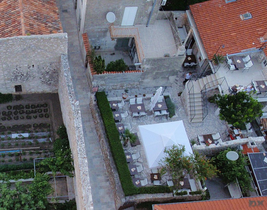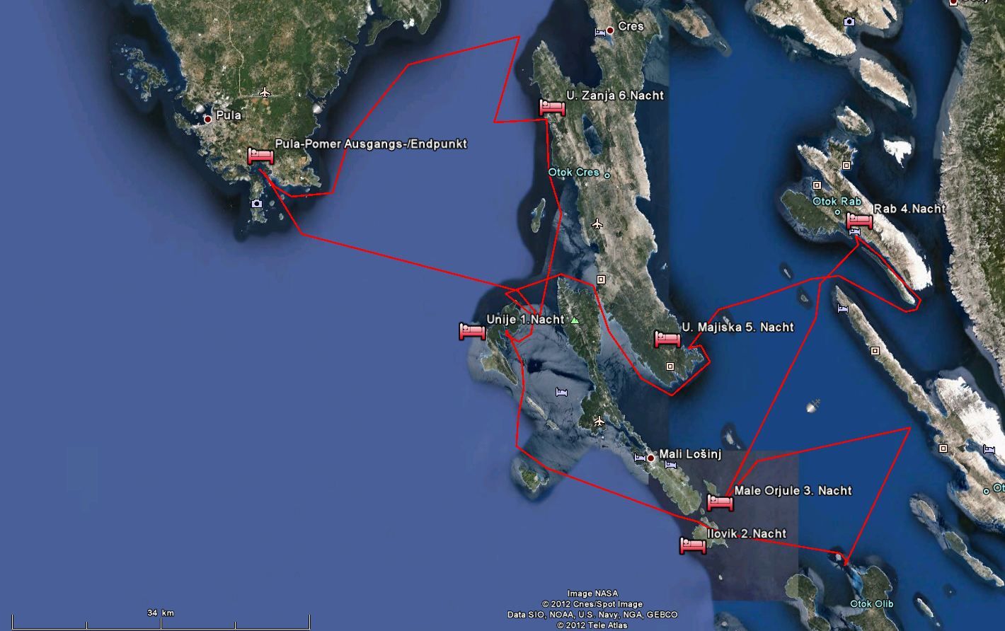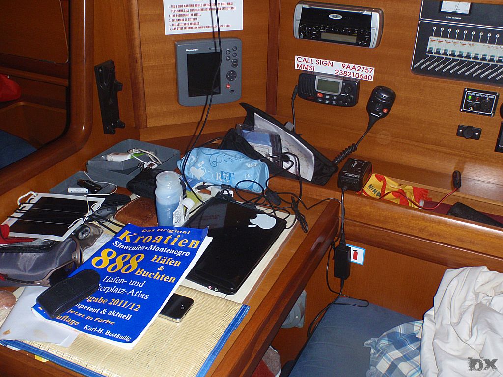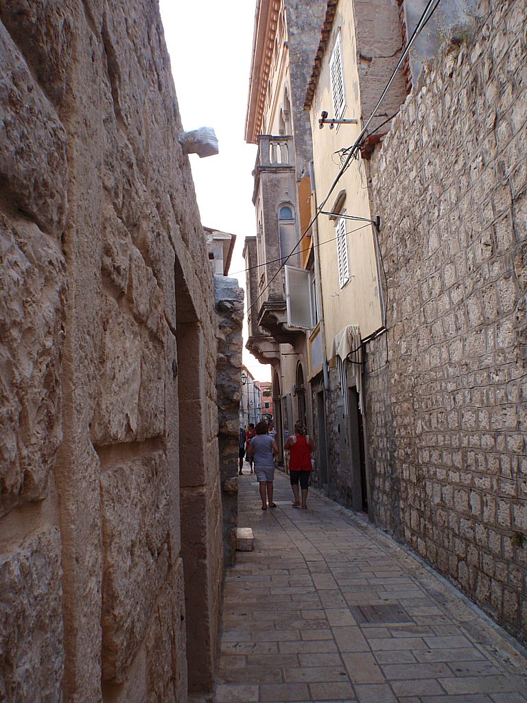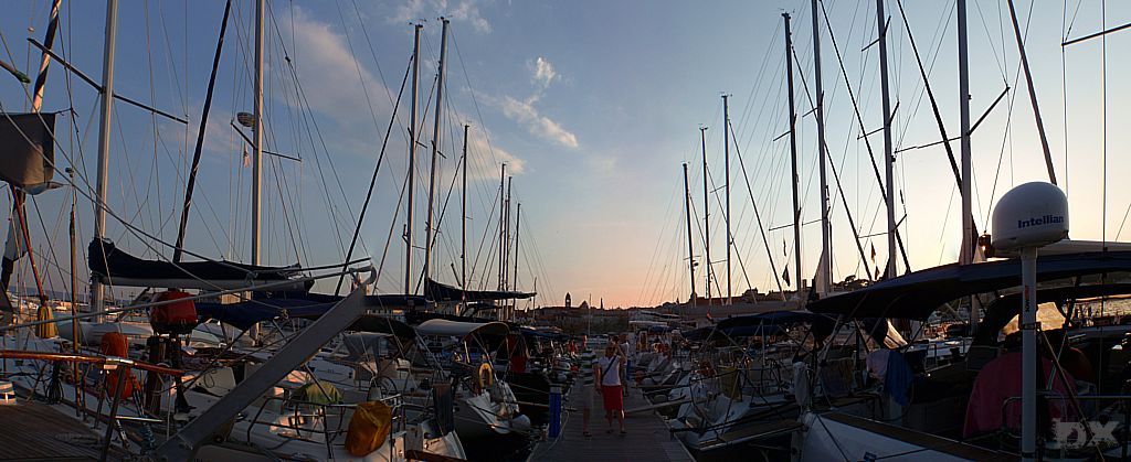 Der lange Schlag nach Rab steht an. Quer durch die Kvarner Bucht. Wenig Wind. Mit 2-3 Knoten Fahrt dümpeln wir dahin. Die Hitze ist drückend. Die Schattenplätzchen rar. Vor der Einfahrt in der Hafen noch eine Runde schwimmen. Ingo verletzt sich leider ordentlich am Schienbein, wird später am Tag in Rab mit vier Stichen genäht. Aber was solls. Der Körper muß das ab können. Im Hafen steht die Luft. An Board ist es nicht aus zu halten. Den Nachmittag verbringen wir in einer schattigen Lounge bei einem kühlen Bierchen. Lifes Easy. Abends excellente kroatische Tapas. Tolle Idee. So kann man mehrere kleine Leckereien probieren. Anchovis auf Polenta, gegrillte Kalamari, Garnelen … um Euch den Mund wässrig zu machen. Nachts ist kaum an schlafen zu denken. Die östereichischen Nachbarn feiern bis zum Sonnenaufgang ohne Rücksicht auf Verluste. Nur weg hier. Ankern ist Klasse, da kann man sich die Nachbarn aussuchen.