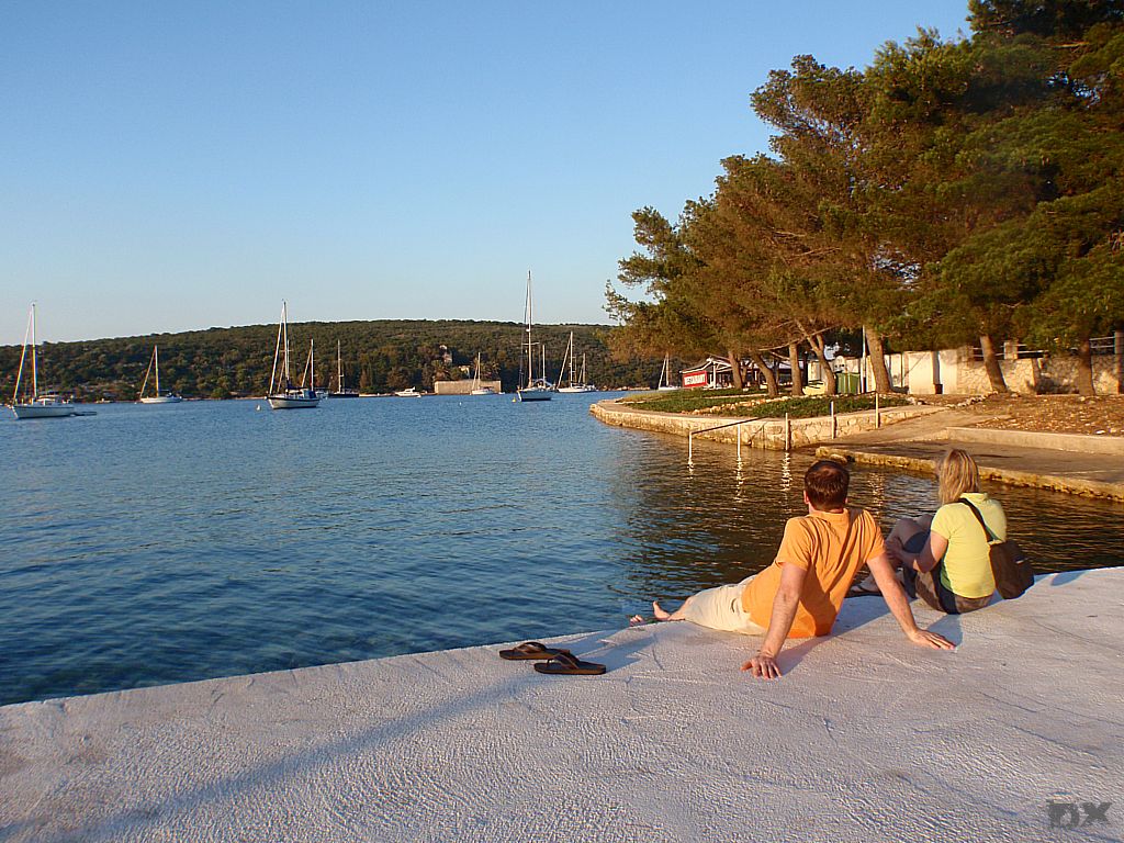 Von Unije weiter nach Susak und nach Ilovik. Wir liegen für die Nacht dann an der Boje, in einem kleine Kanal. Einiges los hier. Wir machen uns Stadtfein. Heute Abend ist Fussball angesagt. Das Mini-Dingi schwimmt gerade so an der Oberfläche mit uns sechsen an Board. Die 150 m zum Ufer schaffen wir, mit nassen Füssen und Hintern. Eine nette Ortschaft, typisch Kroatien. Eine Kneipe mit Fernseher ist auch bald gefunden. Leider wir das Deutschland Spiel aber in ganz Kroatien nicht übertragen. Die Mädels sind entäuscht. Ein Bierchen mehr lindert den Schmerz.