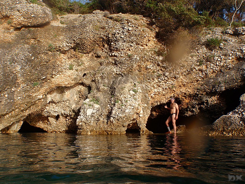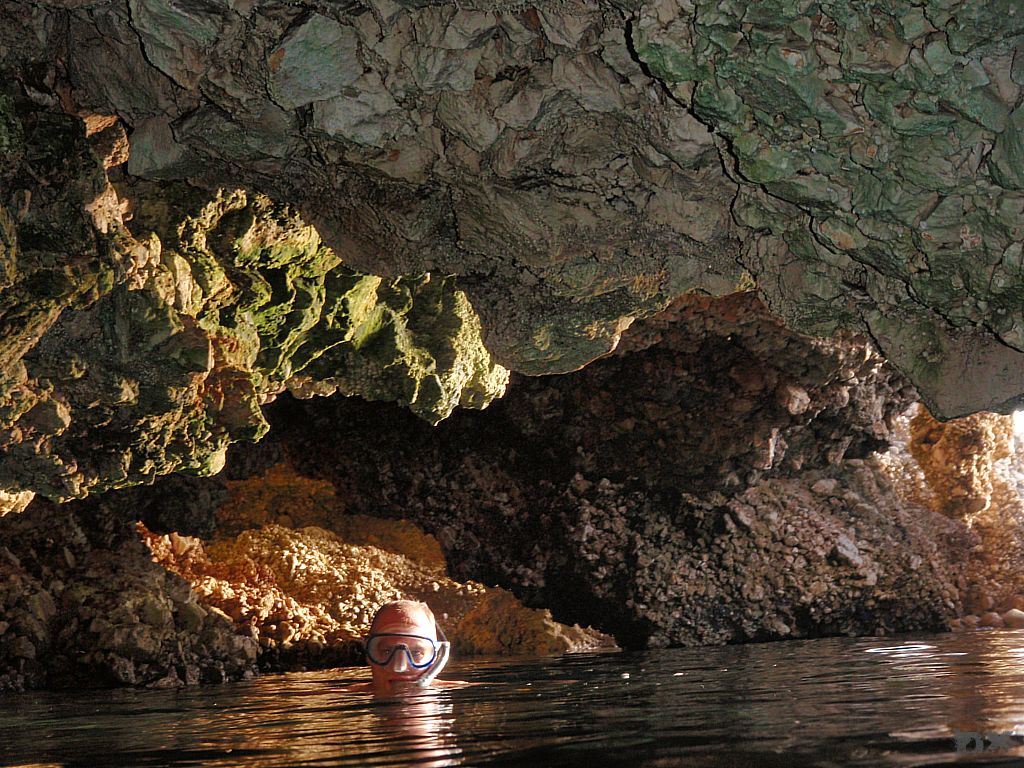 Die Durchfahrt bei Osor ist nur zwei mal am Tag machbar, wenn die Brücke geöffnet wird. Morgens um 09:00 und Abends um 17:00. Von unserem Ankerplatz knappe 3 Stunden Fahrt. Um 06:00 machen wir uns auf den Weg. Verschlafen erleben wir den Sonnenaufgang. Kaffee hilft. Wir reihen uns in die Yacht-Schlange vor dem Osorkanal ein. Ingo und Stefan holen mit dem Dingi noch frische Semmel. Um 09:30 sind wir durch und es hat tatsächlich etwas Wind heute. Nach dem Frühstück segelen wir, üben Manöver, lernen das steuern und die verschiedenen Kurse. Delphine tauchen auf! Wir ändern unseren Kurs. Die Delphine auch. Was wie ein Spiel. Ganz Nahe kommen wir, hören sogar das schnaufen wenn sie auftauchen. Cool. Am Nachmittag dann weiter in Richtung Norden zur Bucht von Zanja. Dort gibt es eine „Blaue Grotte“ in die man hineinschwimmen kann. Unter Motor geht es entlang der steilen Westküste von Cres. Wir ankern auf 12 m Tiefe, dirket vor der blauen Grotte. Dunkel. Etwas gruselig. Mit etwas Mut wagen wir uns ein paar Meter vor bis es zu dunkel wird. Eine Taschenlampe haben wir leider nicht dabei.