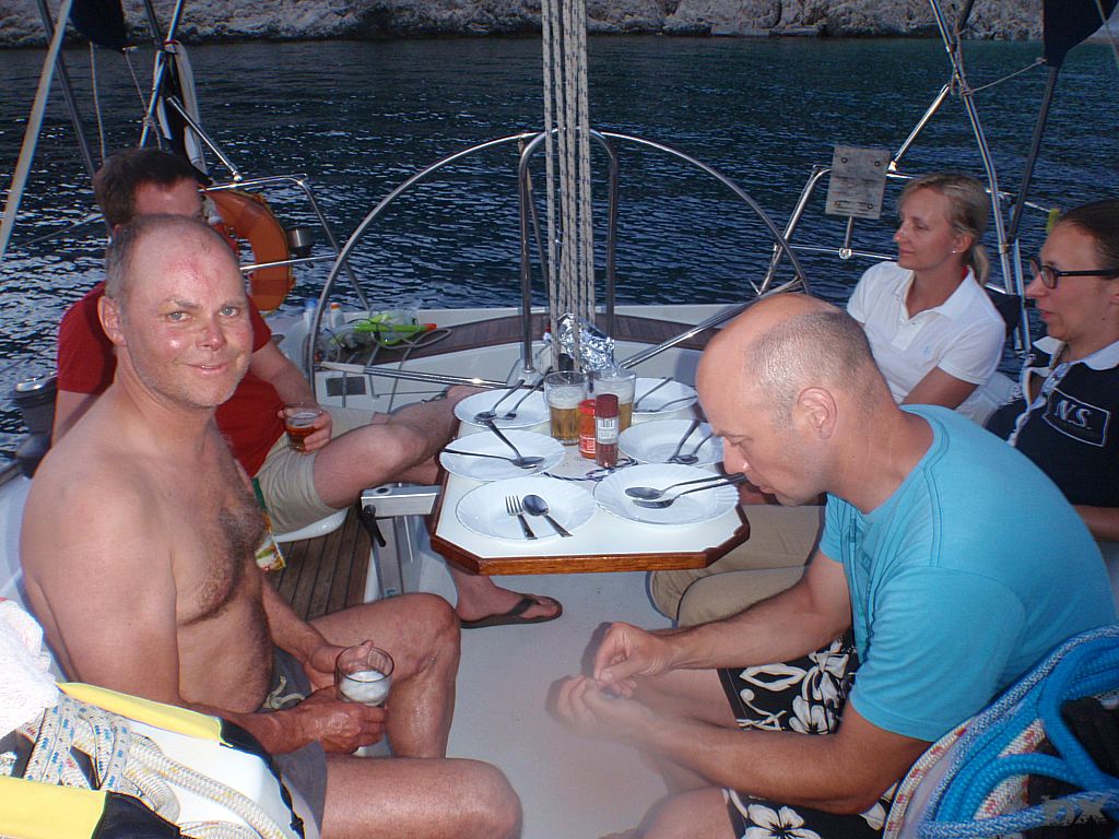 Schön war’s. Ein tolle Crew. Traumhaftes Wetter, tolle Sonnenuntergänge, Wind und Flaute, Delphine, Fische, in Grotten geschwommen, gesegelt unter Spinnaker. Sail on!
