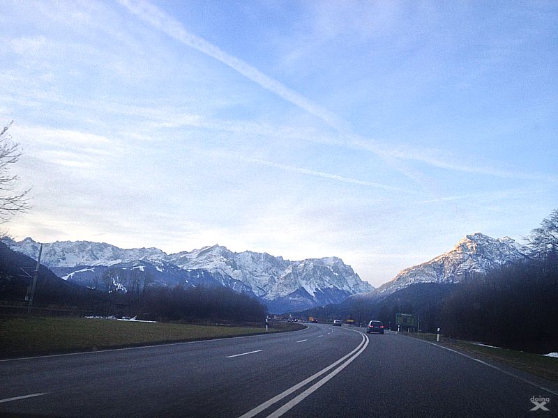 Beim Abstieg treffe ich die Kollegen. Abfahren über weite Hänge, in tiefem Powder. Wir finden noch ein paar unverspurte Stellen. Wow. New school in weiten Kurven cruisen wir ins Tal. Die letzten 500 Höhenmeter durch den Wald sind noch mal Kraftrauben. Am Parkplatz der Blick zurück. Die Gipfel leuchten in den letzten Sonnenstrahlen. A perfect day!