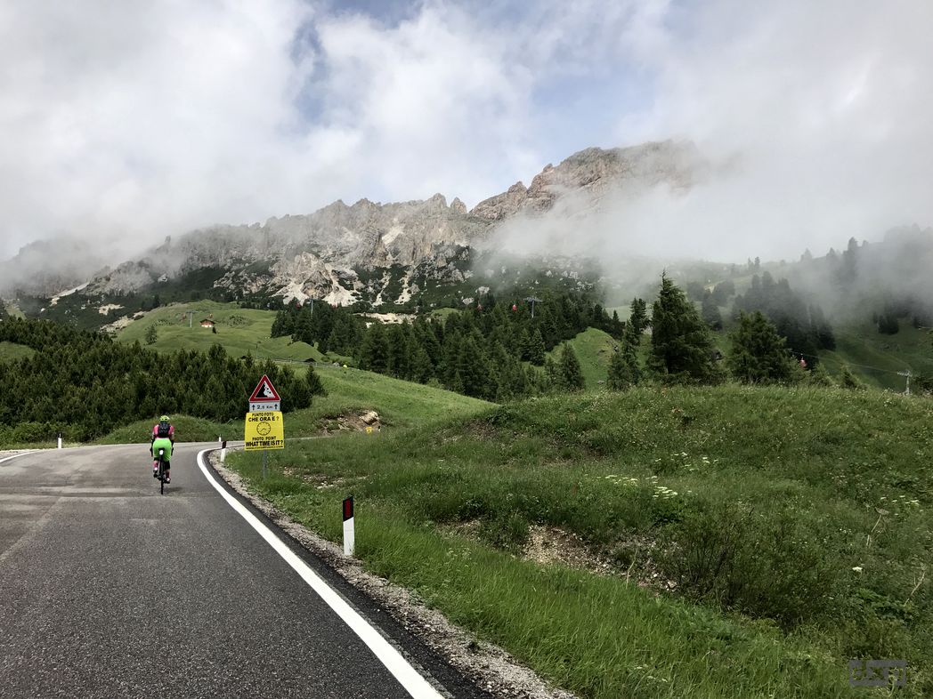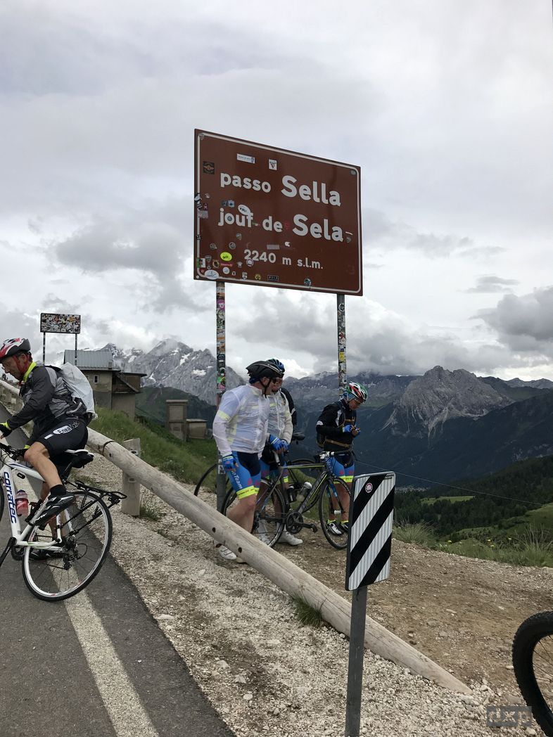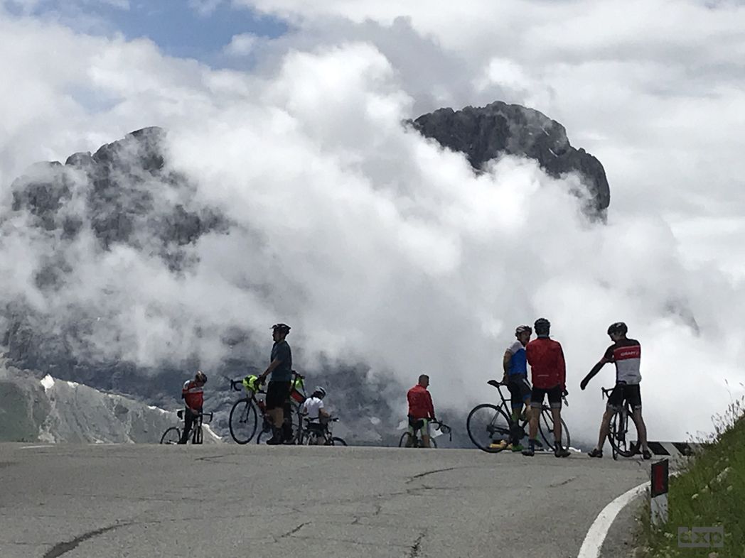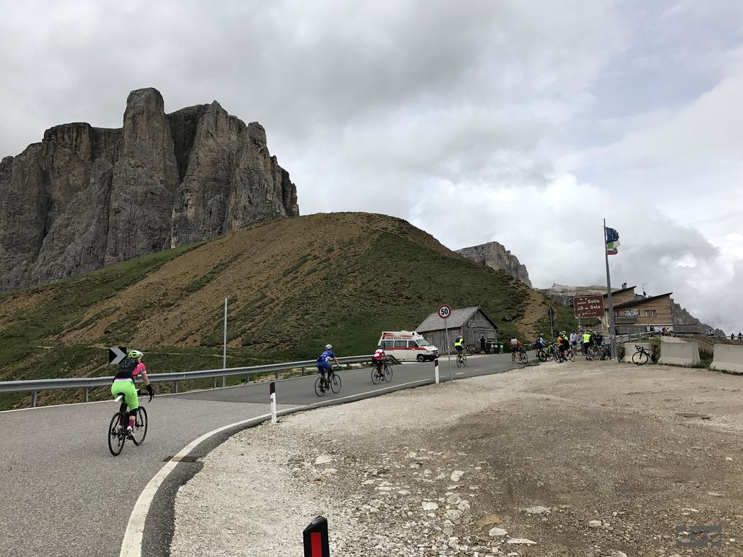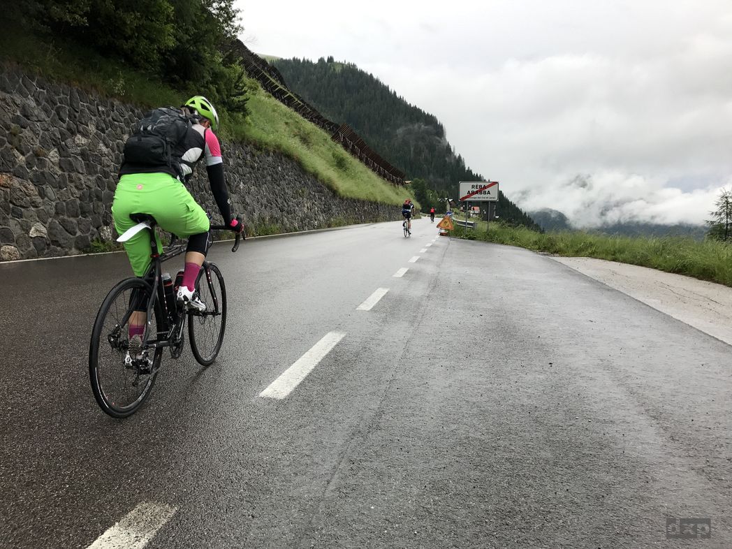 Mit dem Rad um die Sella am „Sella Bike Day“. Auf gesperrten Straßem über 4 Pässe und 1600 Höhenmeter führt uns die Runde. Leider kühl und nass am Morgen. Statt um 08:30 kommen wir erst kurz nach 11:00 los, al endlich der Regen nach lässt. Wir machen uns auf den Weg. Über den Passo Campolongo (1850m), weiter zum Passo Gardena (2110m), dem Passo Sella (2200m) und dann dem Passo Pordoi (2230m). Dort noch ein Finisher Bierchen und wir rollen um 16:30 den letzten Pass runter nach Arabba.