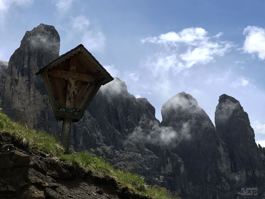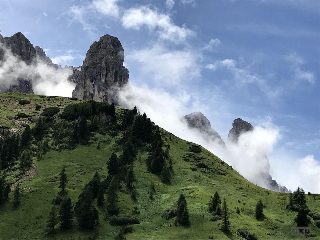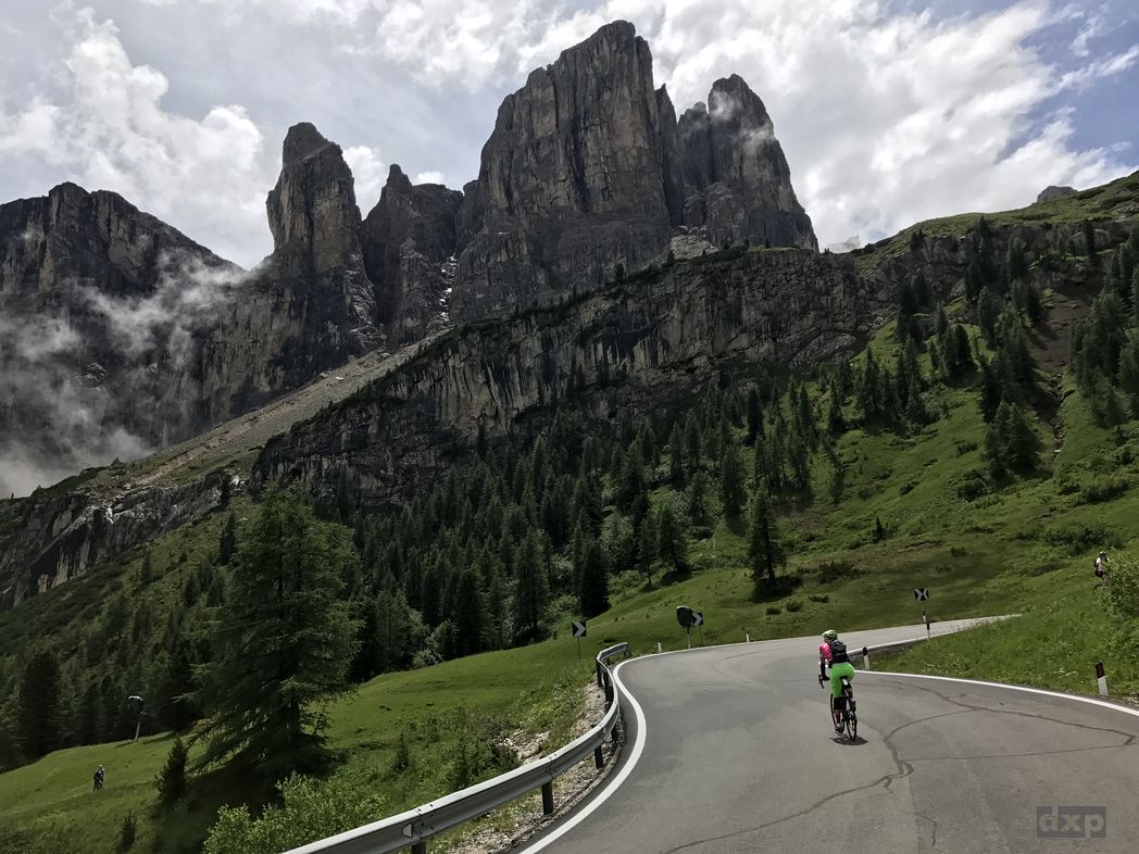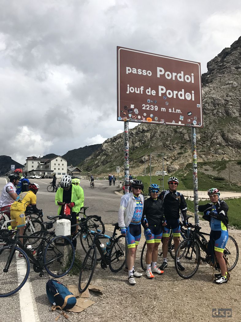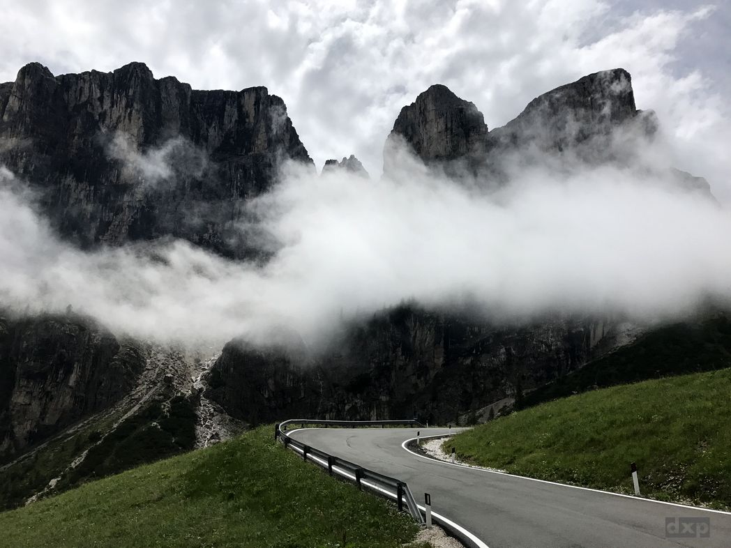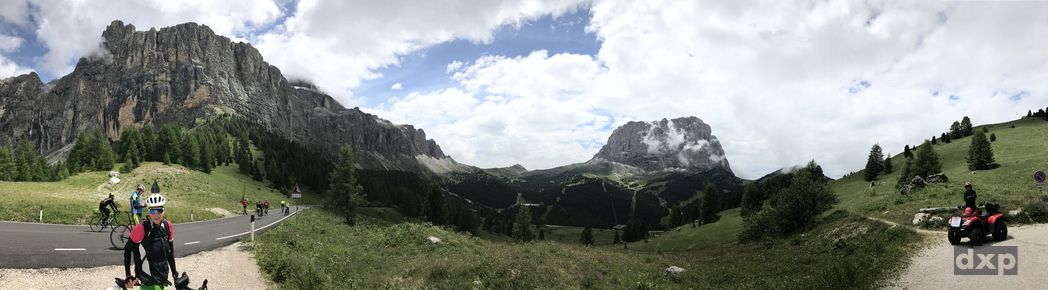 Mit dem Rad um die Sella am „Sella Bike Day“. Auf gesperrten Straßem über 4 Pässe und 1600 Höhenmeter führt uns die Runde. Leider kühl und nass am Morgen. Statt um 08:30 kommen wir erst kurz nach 11:00 los, al endlich der Regen nach lässt. Wir machen uns auf den Weg. Über den Passo Campolongo (1850m), weiter zum Passo Gardena (2110m), dem Passo Sella (2200m) und dann dem Passo Pordoi (2230m). Dort noch ein Finisher Bierchen und wir rollen um 16:30 den letzten Pass runter nach Arabba.