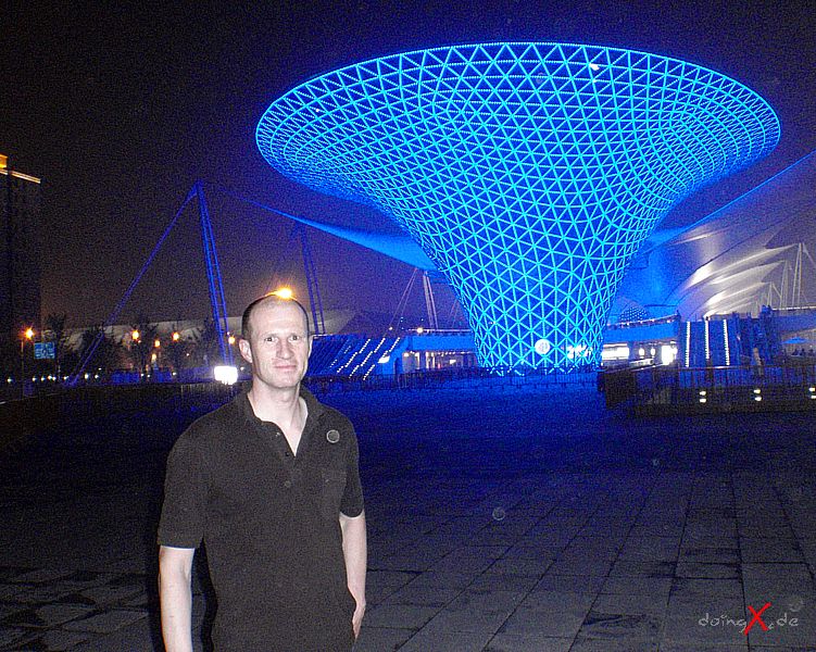 | | Heute Abened auf der Expo. Riesig groß, sehr beeindruckend. Vor allem am Abend viele Lichter. Wir haben den Suedkoreanischen Pavillion besucht – gut eine Stunde anstehen! Abends! Tags ueber, bei der Hitze und Luftfeuchte, muss das anstehen die Hoelle sein. |