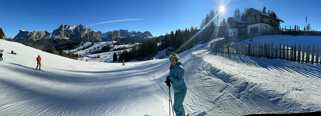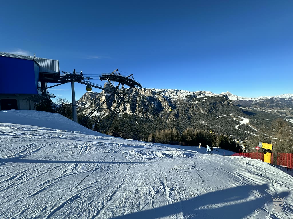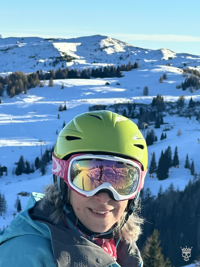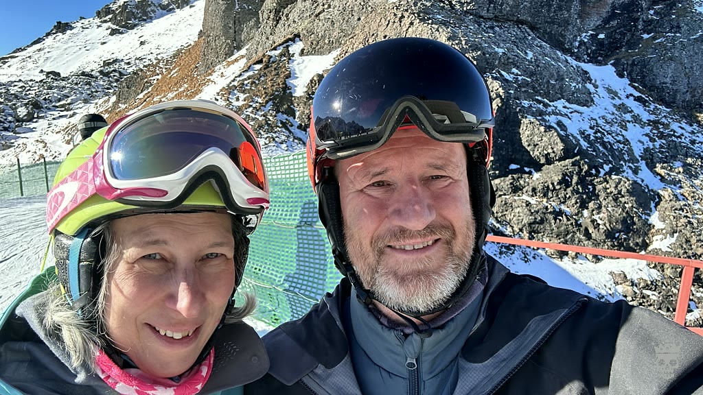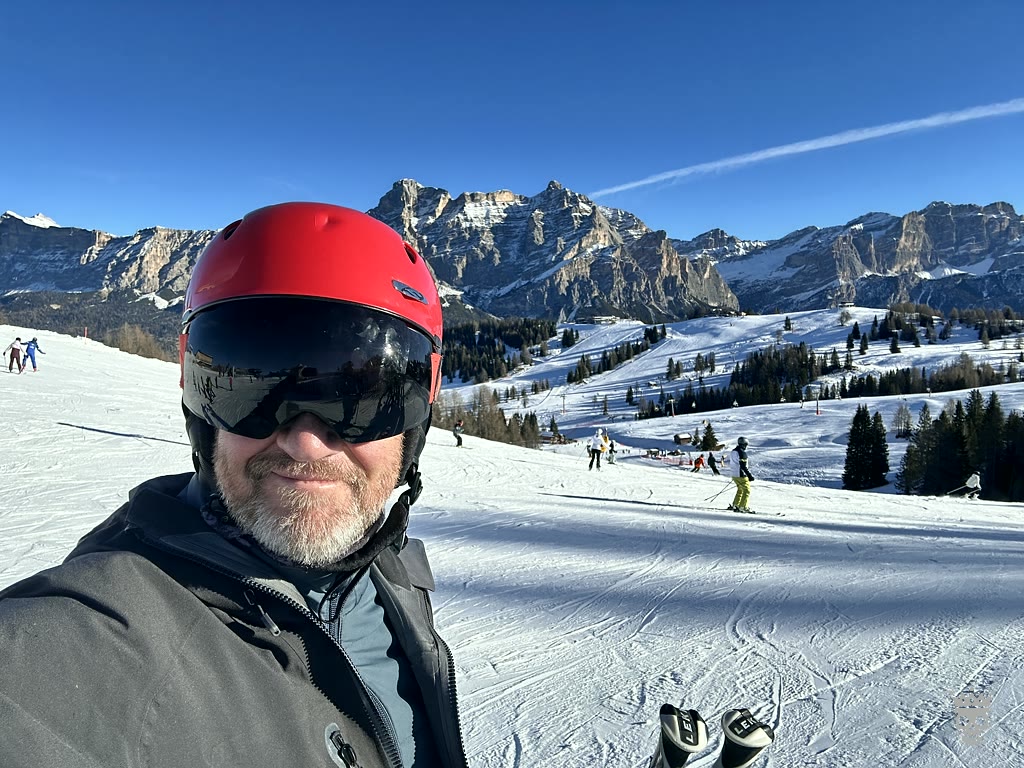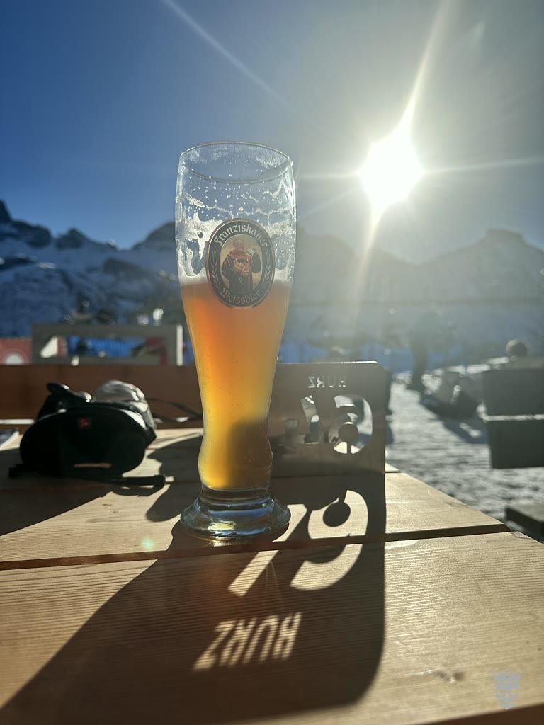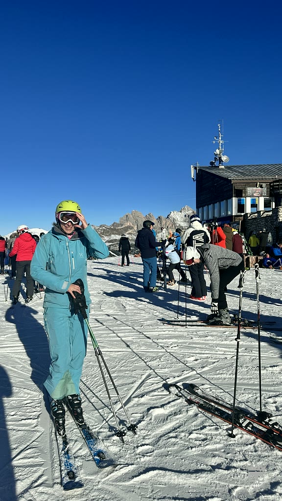 Am Montag zur Marmolada. Gigantische Aussicht in die Dolomite. Traumlandschaft. Die Abgfahrt ist lang, anstrengend und schön. Nochmal fahren wir hoch. Zurück müssen wir den Lift über den nächsten Pass nehmen. Die Abfahrt ist gesperrt, wir prepariert. Die Skifahrer drängeln sich am Lift. Wir gehen erst mal auf ein Bierchen in die Hütte.