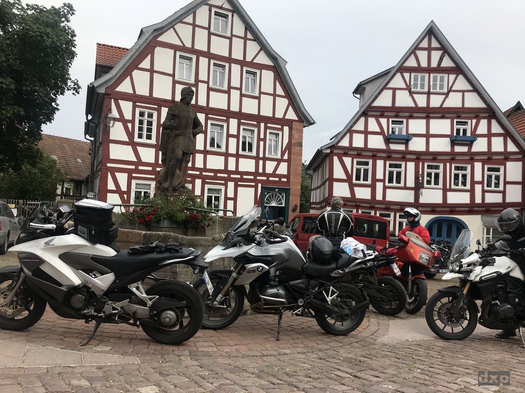 Ein schöner Motorrad-Ausflug mit dem Infineon Team. Diesmal war es der Spessart. Räuber Hotzenplotz und so. Das Wetter durchwachsen, von knapp 30 Grad bis Regen und kühl. Einer kam von der Strasse ab, hatte die Kurve nicht bekommen und einen Feldweg als Auslauf gefunden. Alles cool. Ansonsten viel über Mopeds und Autos gefachsimpelt. Wie gesagt, eine sehr nette Truppe.