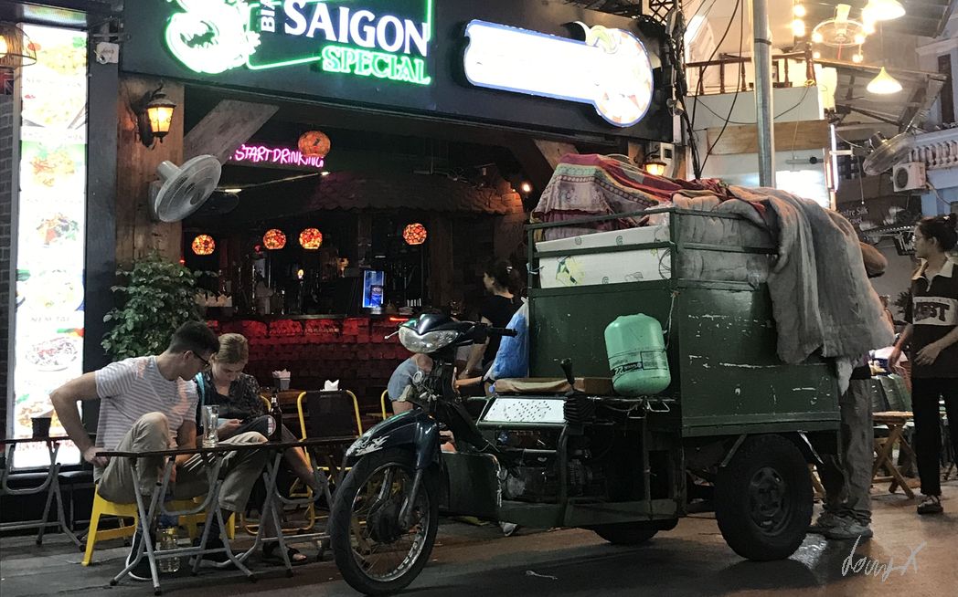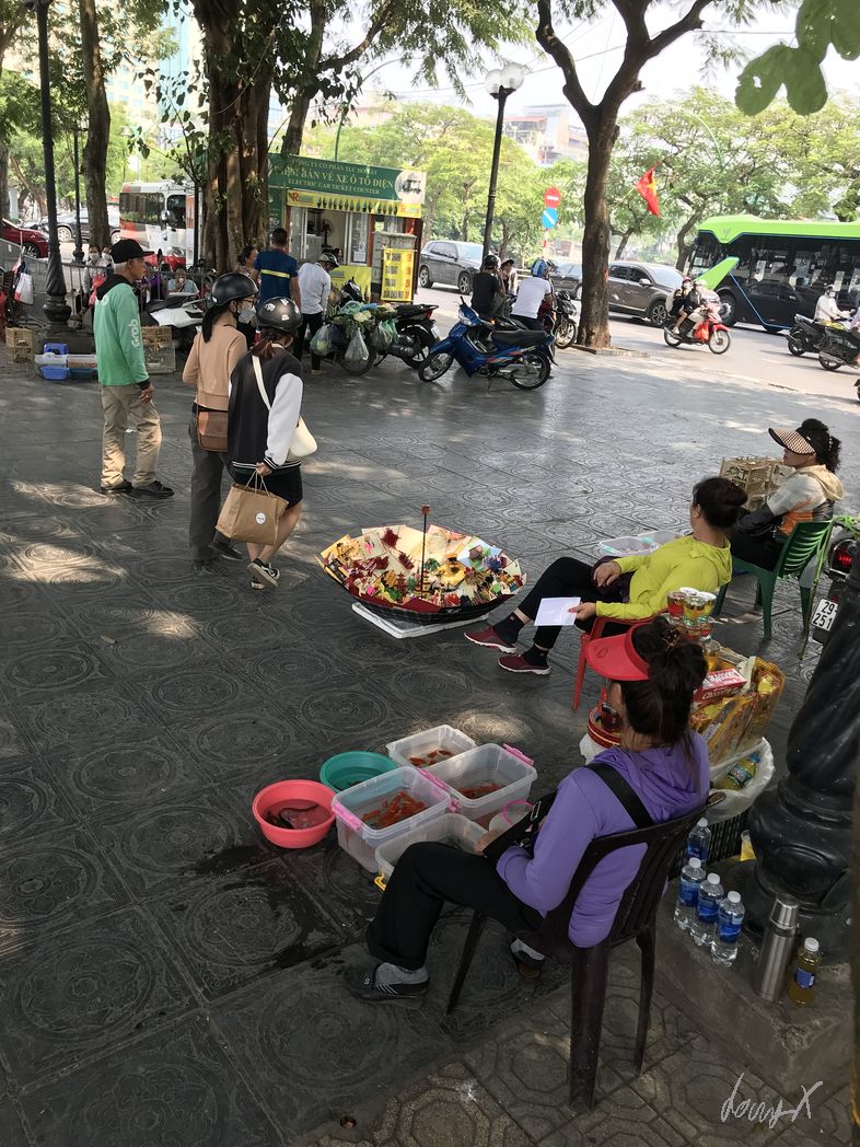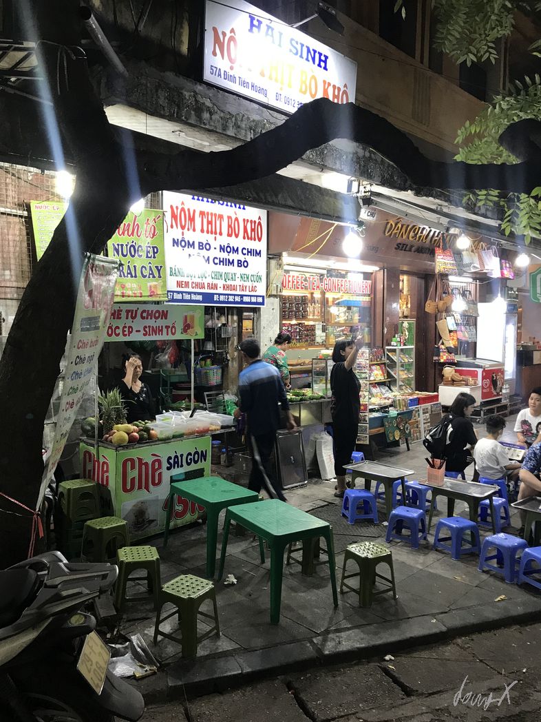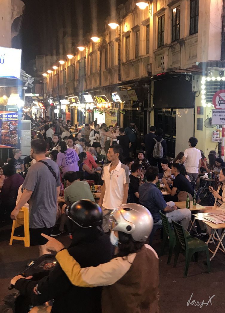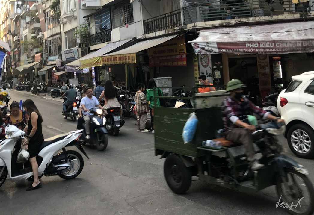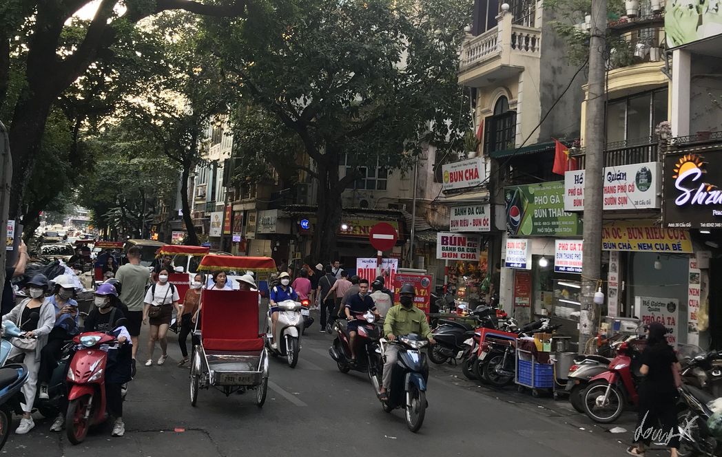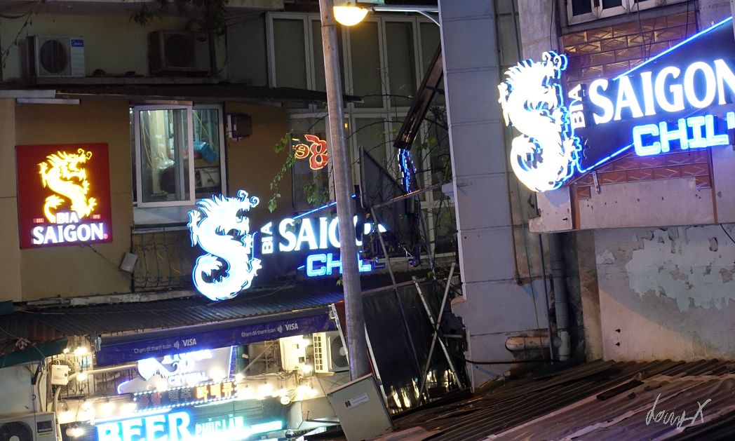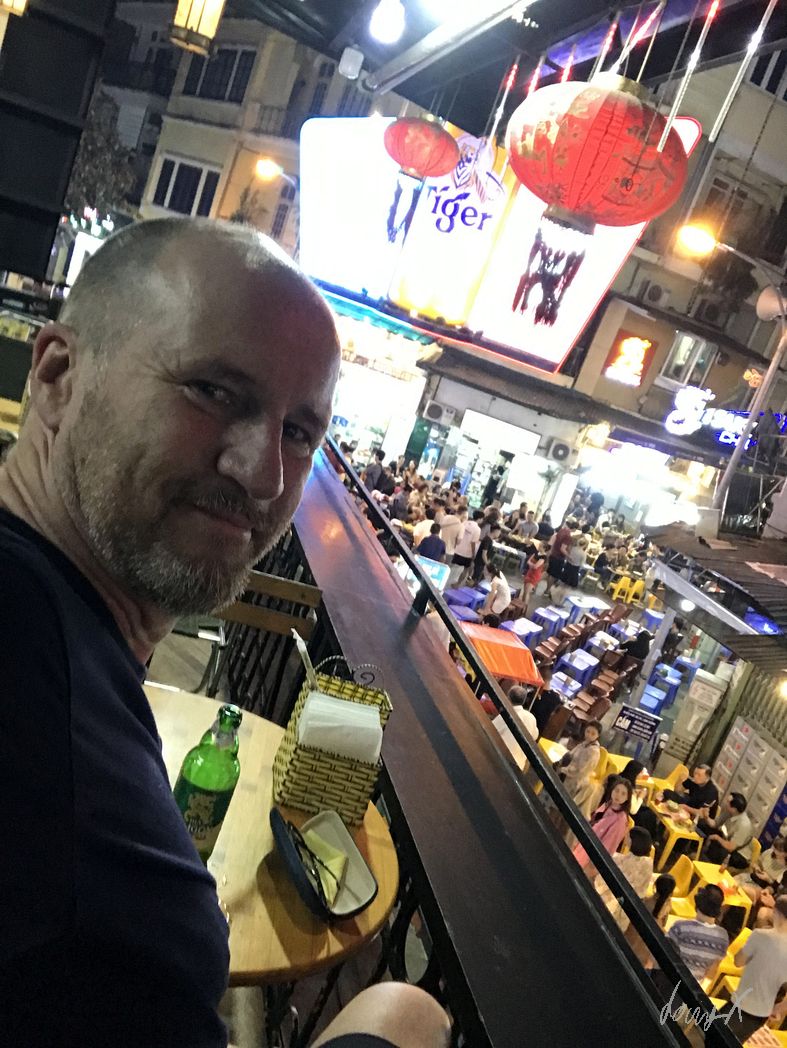 Von München über Bangkok nach Vietnam, Hanoi. Am Samstag Nachmittag komme ich an. Erst mal erholen und die Beine ausstrecken nach dem langen Flug. Abends ist es nur ein kurzer Spaziergang zum „Old Quarter“. Bars, Restaurants und viele Leute. Echt was los hier. Mit Einbruch der Dunkelheit wird es ein paar Grad kühler, hat aber immer noch so um die 22-23 Grad. Angenehm. Ich suche mir ein kleines Restaurant. Kleine Hocker und Tische sind auf der Straße aufgestellt, die Oma kocht. Die Speisekarte hat Bilder, das macht es einfach was leckeres zu finden. Noch ein „Bia Saigon“ und genüßlich beobachte ich das lebhafte treiben der Stadt.