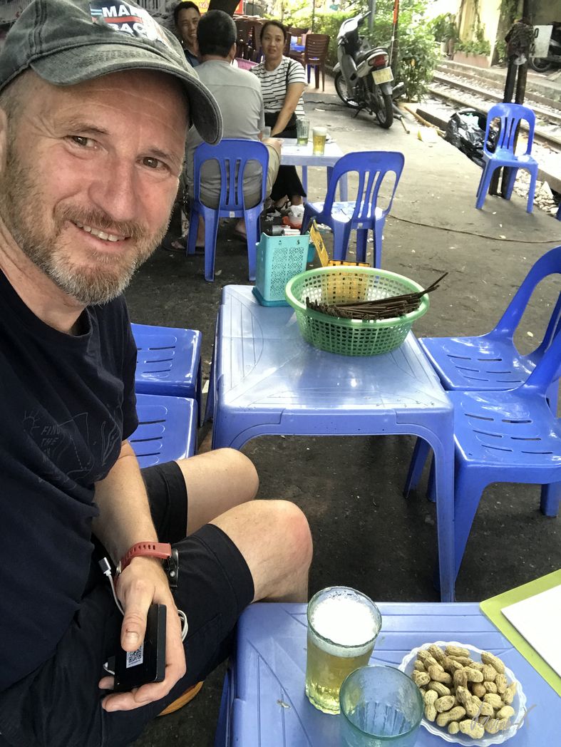 Sonntag Morgen nutze ich den halben Tag für eine Stadtrundfahrt. Noch müde vom Flug und der Zeitverschiebung ist das eine einfache Möglichkeit einen Überblick von Hanoi zu bekommen. Im Doppeldecker-Bus fahren wir die Sehenswürdigkeiten an. Tempel, Seen, historische Gebäude, Paläste und Tempel. Spannend fand ich auch wie der Zug durch enge Häuserschluchten fährt. Eine kleine Bar finde ich ganz in der Nähe. Keine Touristen, aber ein paar Vietnamesen entspannen hier am Sonntag Nachmittag. Ich bestelle mir ein paar „Bia Hanoi“ und warte auf den nächsten Zug. Gerade mal 1-2 Meter neben meinem Tisch fährt der dann auch vorbei. Ein besonderes Erlebnis.